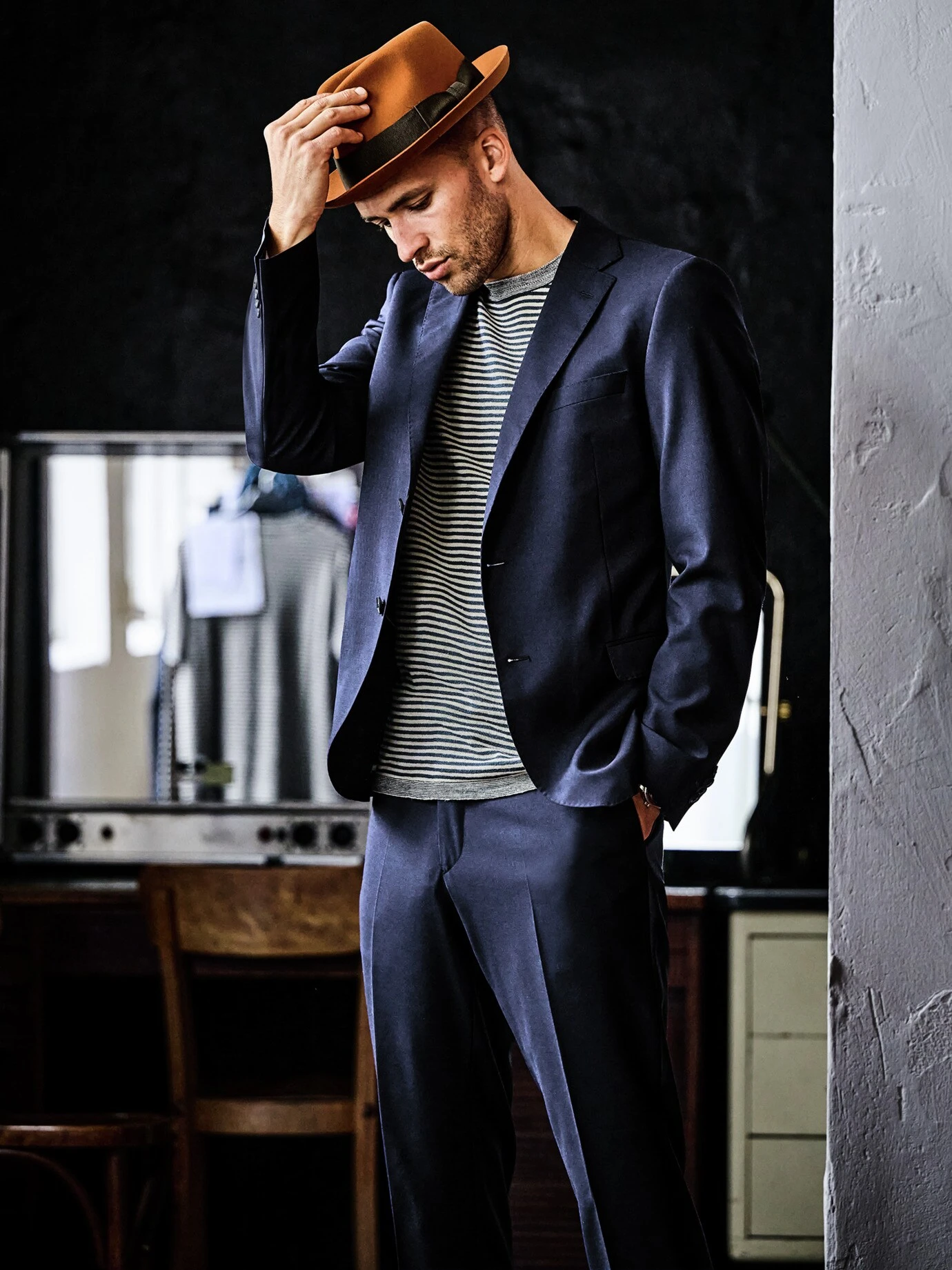 Zum Sehen. Und gesehen werden. Als Klassiker am Pokertisch wird der 1965 Player leicht nach hinten, aus dem Gesicht geschoben (verbessert den Überblick). Mit seinem matt seidigen Glanz, dem starken Farbton „rote Erde“ und dem fangobraunen Rips Band als Garnitur, wirkt er wie ein edles Einzelstück, lässt seinen Träger fein aber auch ein wenig verspielt und durchtrieben wirken. Kombinieren Sie ihn mit gutem Jazz im Hinterkopf, ansonsten zeigt er sich modisch überaus kompatibel.