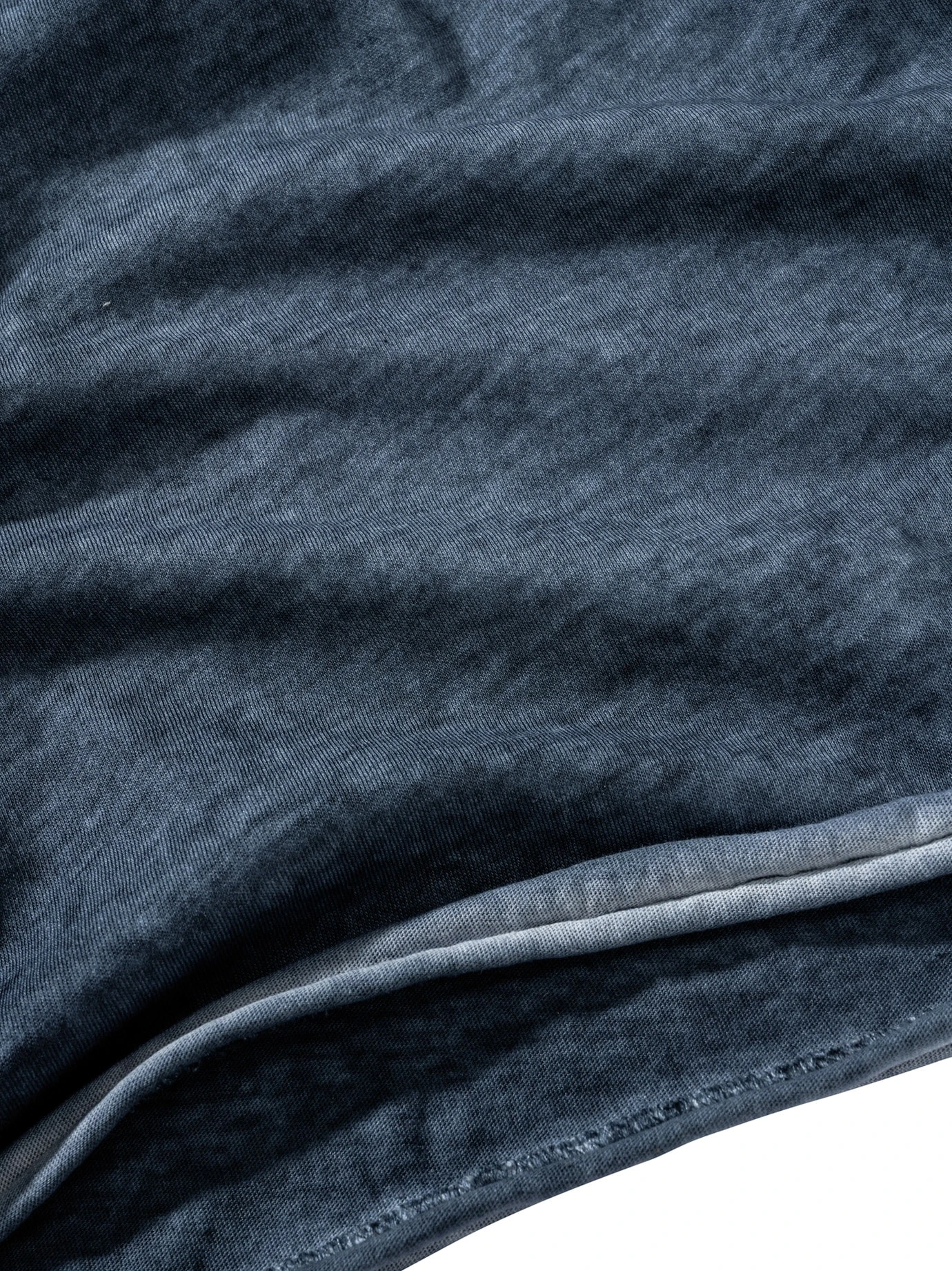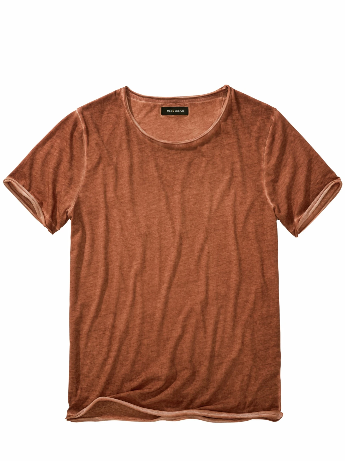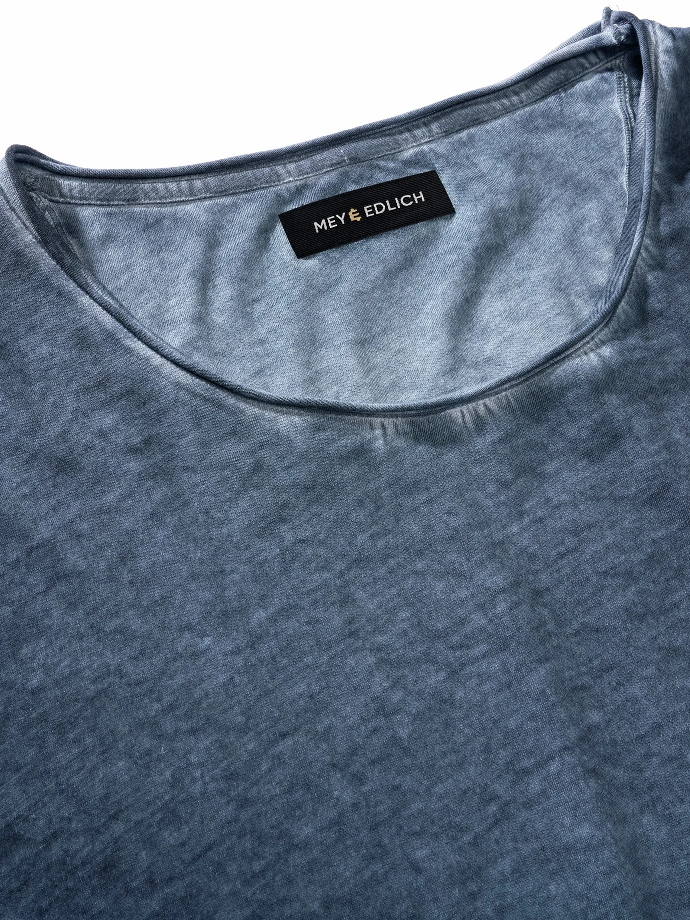 Geschichten aus dem Leben eines T-Shirts. Sie sind vielseitig, weil ein T-Shirt zu fast jedem Outfit gehört. Sie sind spannend, weil Abenteuer im T-Shirt und nicht im Hemd begangen werden. Sie sind authentisch, weil ein T-Shirt sich nicht verkleidet. Die authentische Farbe entsteht per Oil-dyed-Färbung, bei der die Farbpigmente unregelmäßig am Stoff, insbesondere an den Nähten haften. Dazu rollende Kanten. Weicher Jersey made in Portugal.