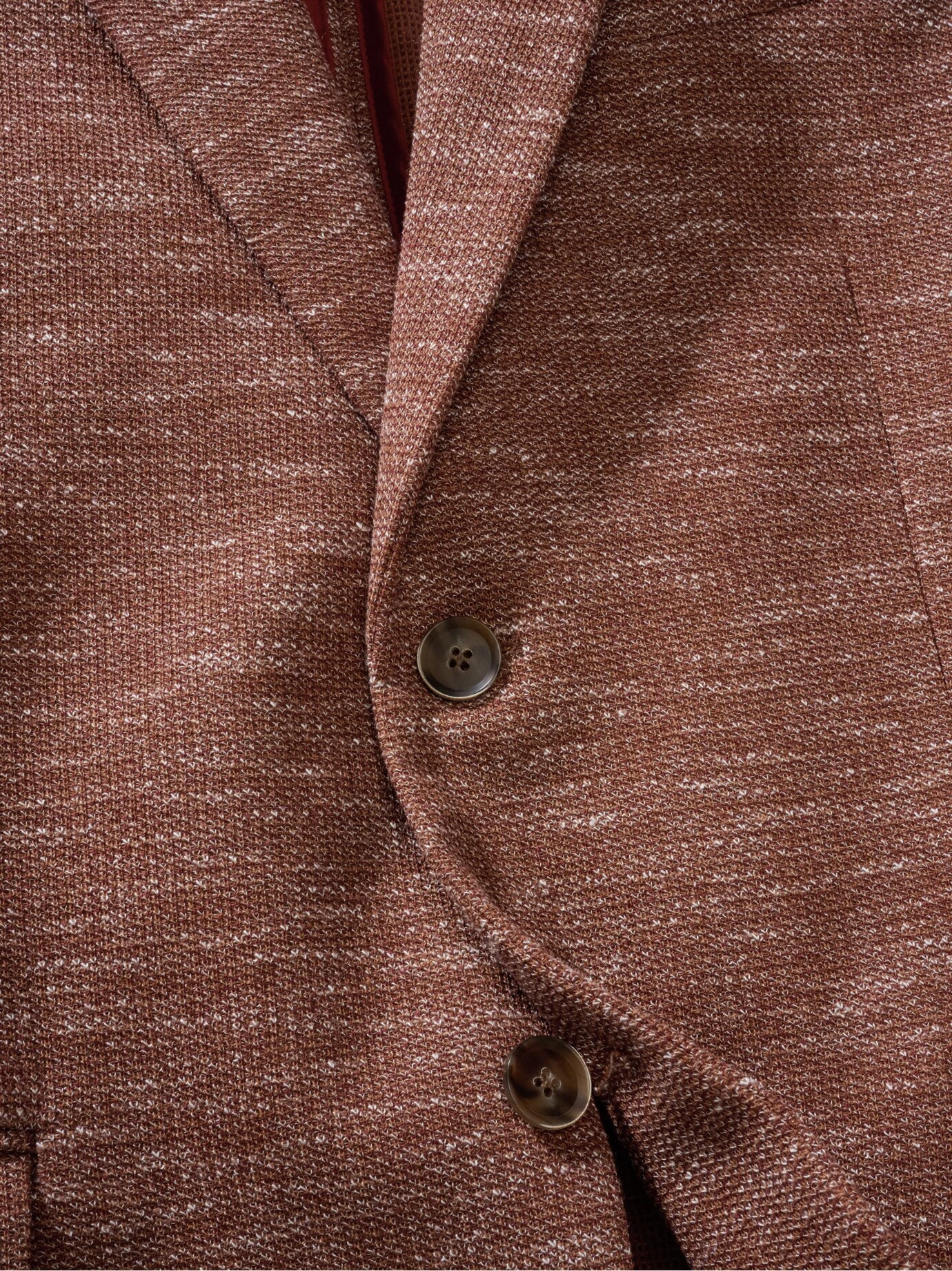 Nennen Sie uns ein bequemes Kleidungsstück, das gut aussieht. Ok, ein Sakko ist nicht das naheliegendste. Dieses trägt sich aber so bequem wie eine Sweatjacke und gibt durch den italienischen Jersey mindestens genauso nach. Noch unkomplizierter wird es durchs knitterfreie Polyester. Die Melange aus Rostbraun und gebrochenem Weiß passt außerdem zu fast allem, von der edlen Chino bis zur lässigen Leinenhose, zu Jeans sowieso. Macht sich im Büro so gut wie auf der After-Work-Party oder beim Rennbahnbesuch: Das luftige Schmetterlingsfutter ermöglicht Ihnen schnelles Anziehen.