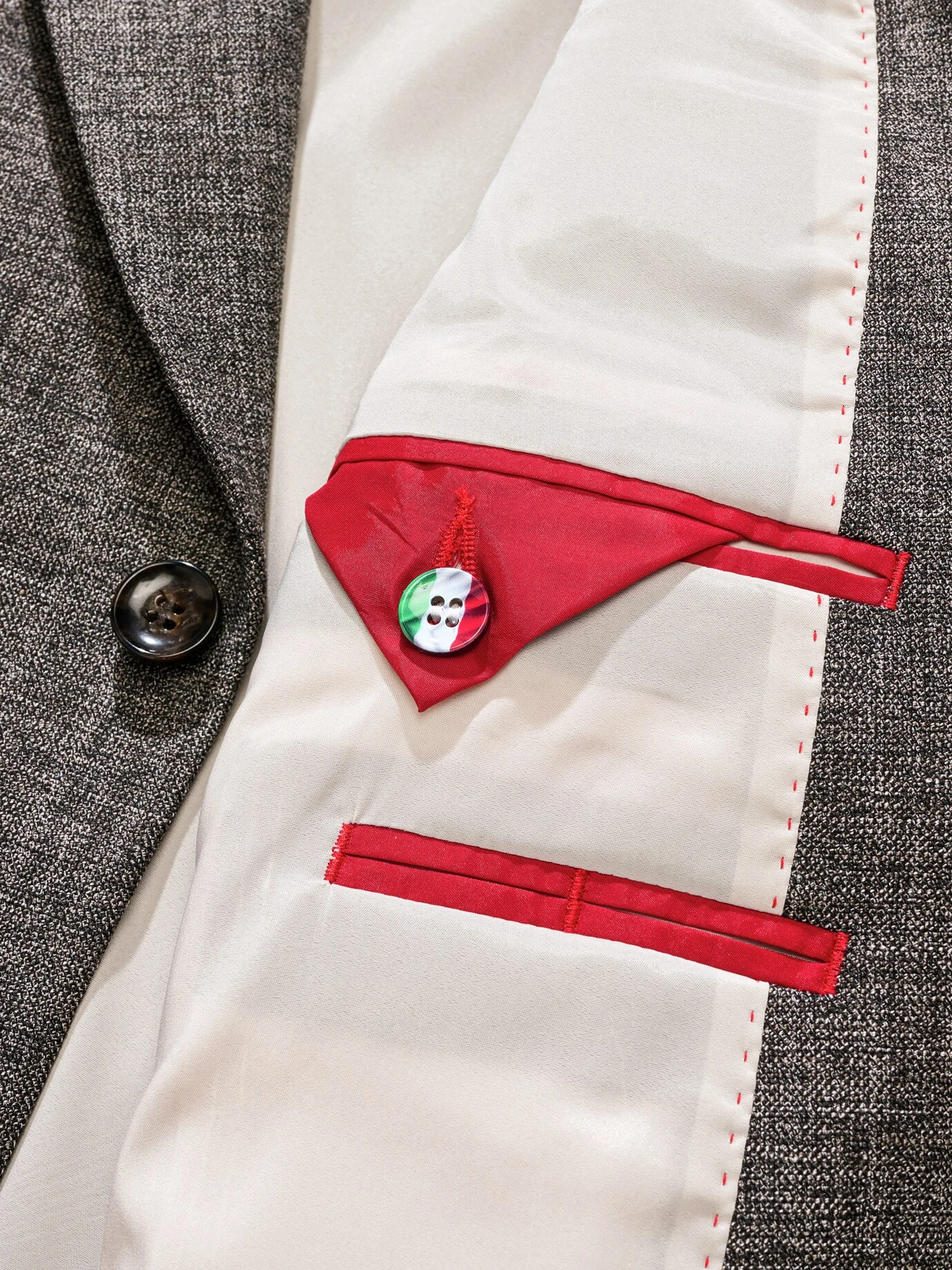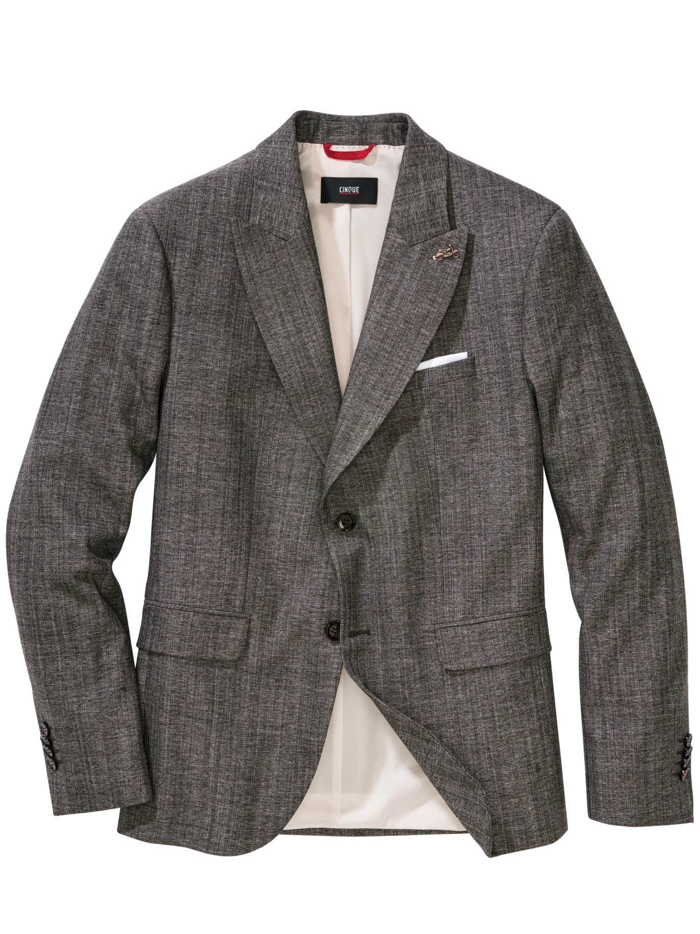 Ciao Primavera! Mit seiner leinenähnlichen Struktur liefert das Sakko von CINQUE einen Ausblick aufs Frühjahr. Sein hochwertiger Stoff, eine ausgeklügelte Mischung aus Hightech- und Naturfaser, knittert kaum (nicht mal, wenn Sie ihn aus dem Koffer nähmen), und die minimale Stretch-Beigabe erlaubt maximale Bewegungsfreiheit. Das Jacquard-Futter mit kontrastierenden Paspeln und tonig eingewebten Vespa-Motiven betont die italienische Lebensart (weshalb der ikonische Roller als schmucke Anstecknadel auch das Revers ziert). Und der Schnitt: akkurat und doch komfortabel. Dank Baukastensystem können Sie Sakko, Weste und Hose in unterschiedlichen Größen bestellen.