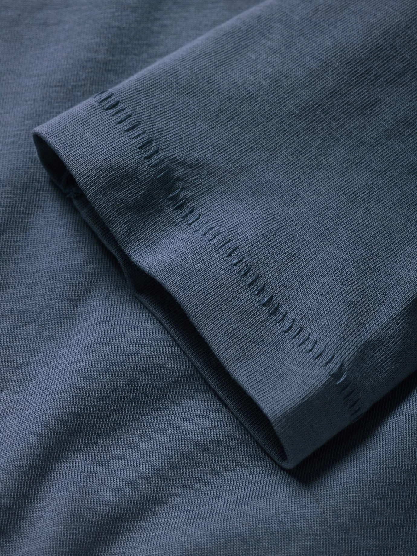 Verarbeitung: Modisch neu: die unperfekte Rollkante am Ausschnitt. Gewirkt als blickdichter Baumwollstoff. Slim Fit.