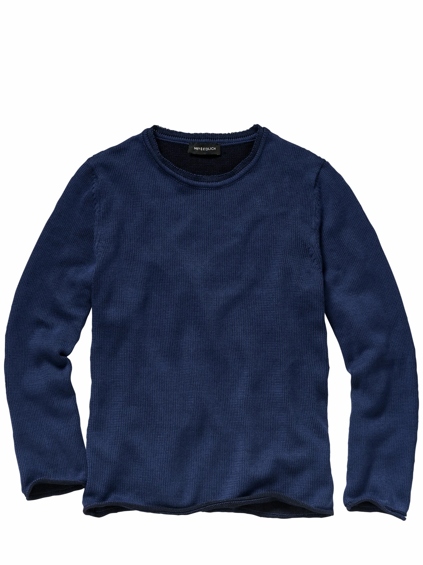 Stellt keine Fragen. Einer, der (zu fast allem) passt und dabei unkompliziert ist. Seine Farbe changiert (je nach Winkel), seine feinen Details lassen ihn abheben – Stichwort: sanft einrollende Abschlüsse, perfekt verstrickte Schultern. Gestrickt in sogenannter Vanisé-Technik, dabei hängen die Baumwollmaschen luftig ineinander und ergeben die optische Dreidimensionalität. Leicht ausgeschnittener Rundhals, ein T-Shirt drunter ist Geschmackssache, er trägt sich eh auf nackter Haut weich.