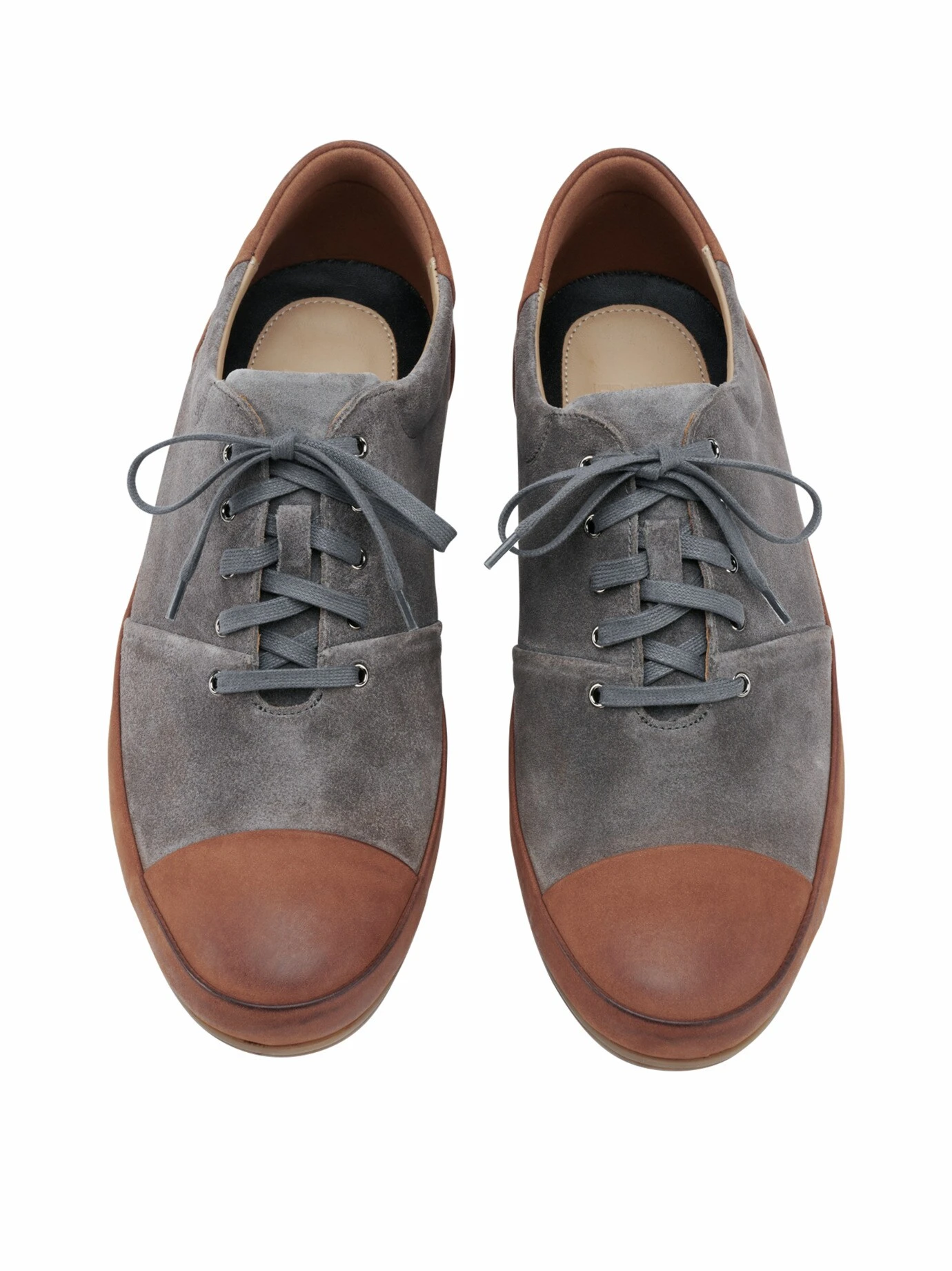 Verarbeitung: Hergestellt in Schuhmachermanier: italienisches Kalbvelours (gewachst und geölt, damit es Regen und Schmutz abkann), in Summe langlebig per doppelter Naht vernäht. Im kritischen Bereich verstärkt mit festem Nubuk.