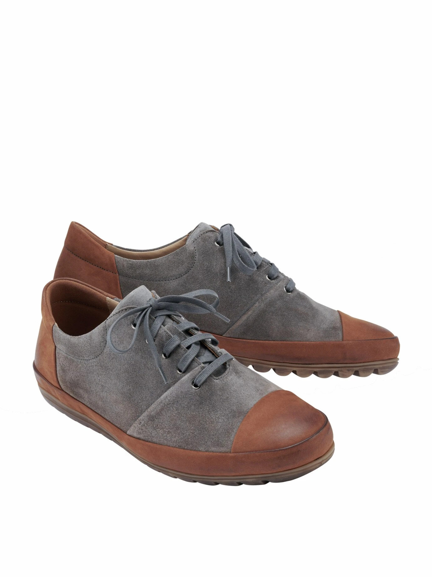 Material: Obermaterial, Futter und Decksohle (herausnehmbar): Kalbleder. Haltbar vernähte Gummilaufsohle. Abbürsten.