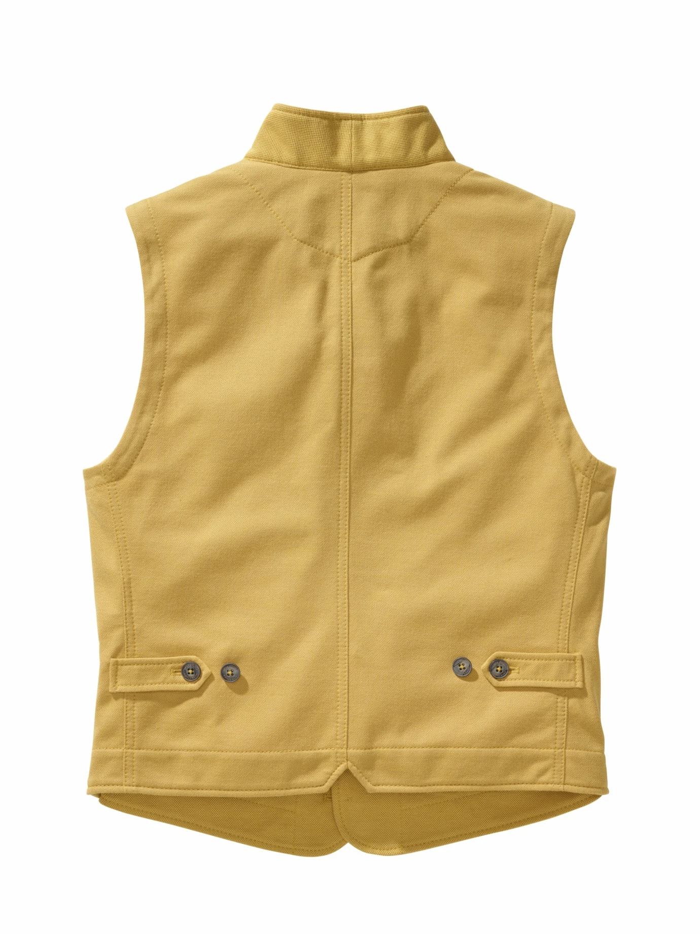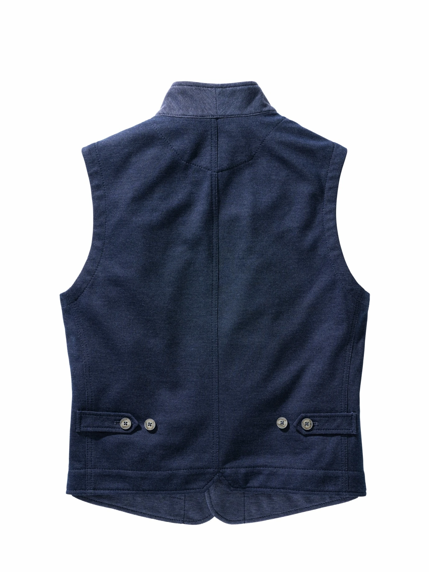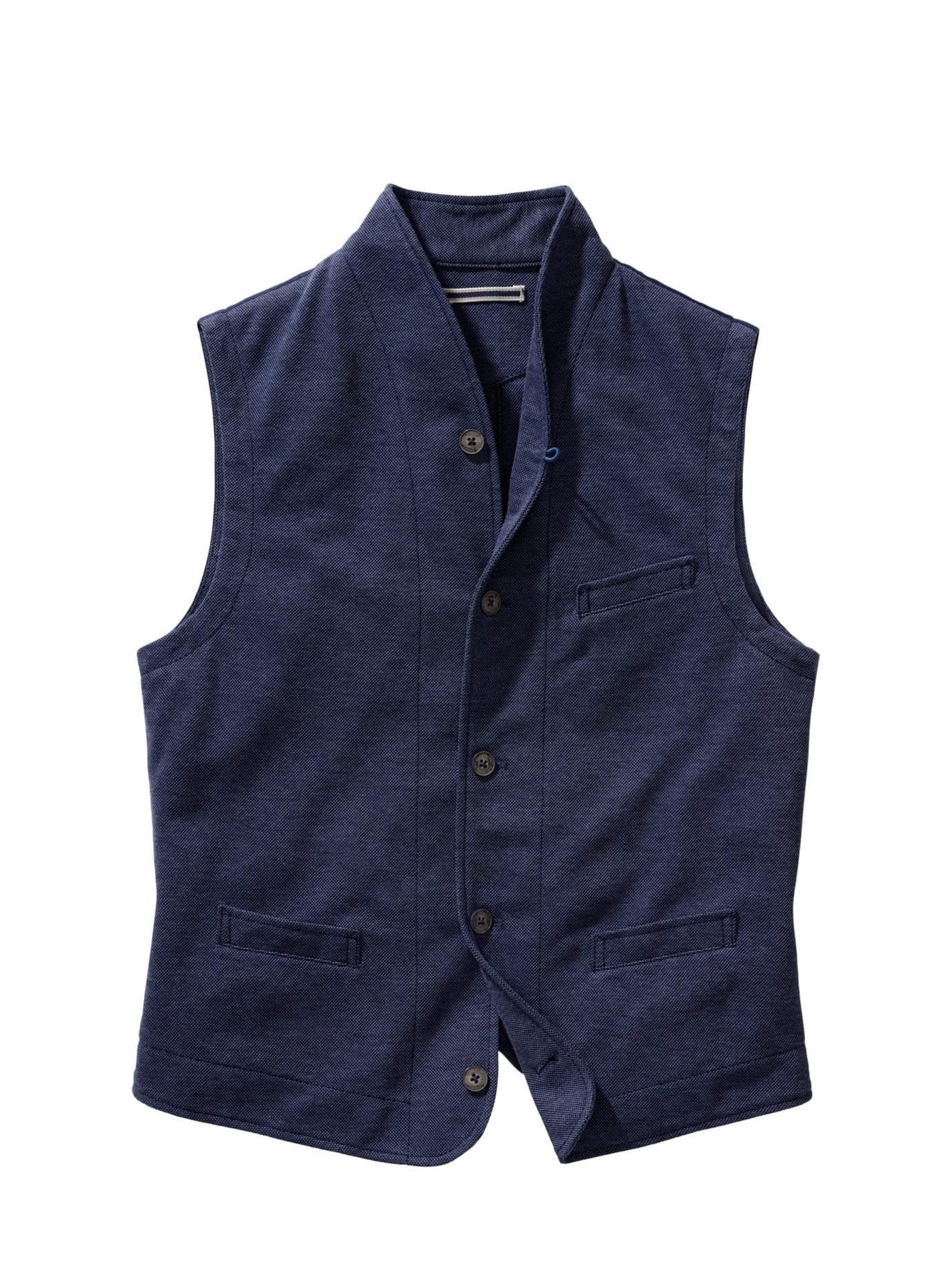 Eine, die man nicht missen möchte. Die Weste ist aus weichem, fein strukturiertem Piqué-Jersey mit viel Baumwolle und einem guten Anteil innovativer Fasern, die sie robust machen. Vorn ist die Weste doppellagig gefertigt, das gibt Stand, das Rückenteil ist ungefüttert und linksseitig verarbeitet, was den dezent zweifarbigen Effekt erzeugt. Der hohe Tragekomfort ist schnell so selbstverständlich, dass man die aufwendige Verarbeitung dahinter fast vergisst – so soll es sein. Drunter passen Hemd oder Longsleeve, als Hose geht alles, was nicht zu fein ist.