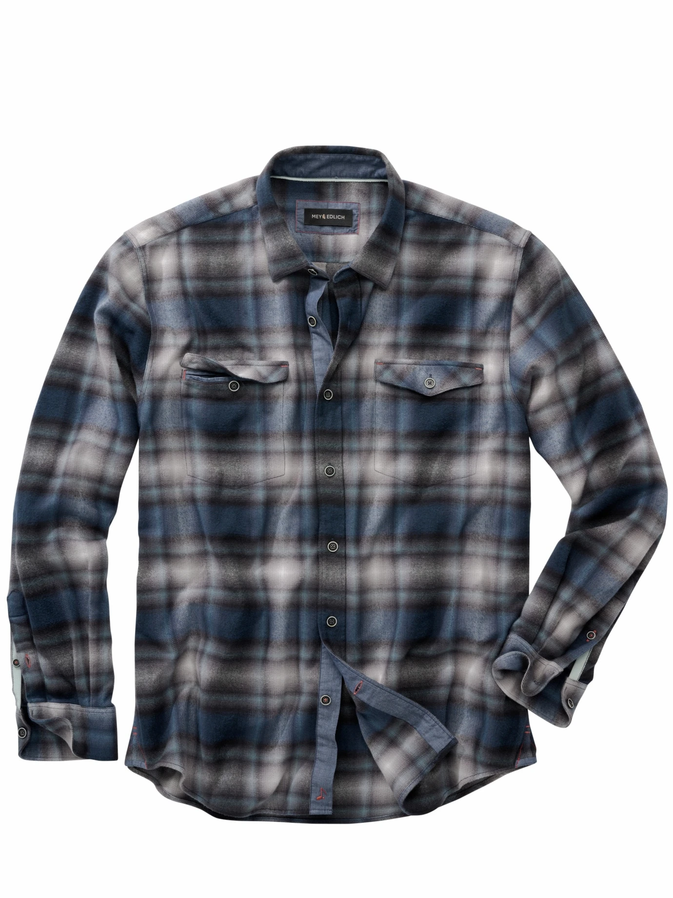 Ein Hemd wie ein Kunstgriff aus der Fotografie. Blende auf, abdrücken und schon entstehen knackscharfe Portraits mit verschwommenen Hintergründen. Was Fotografen das „Bokeh“ nennen, ist bei diesem Karohemd ein Unschärfeeffekt, der die ganze Aufmerksamkeit auf seinen Träger lenkt. Trotzdem bleibt es im Hintergrund präsent als ein Hemd, das mit seinem royalen Farbmix und dem entspannten Flanell ein idealer Match zur Jeans ist. Mit T-Shirt darunter wird es, offen getragen, zum Overshirt.