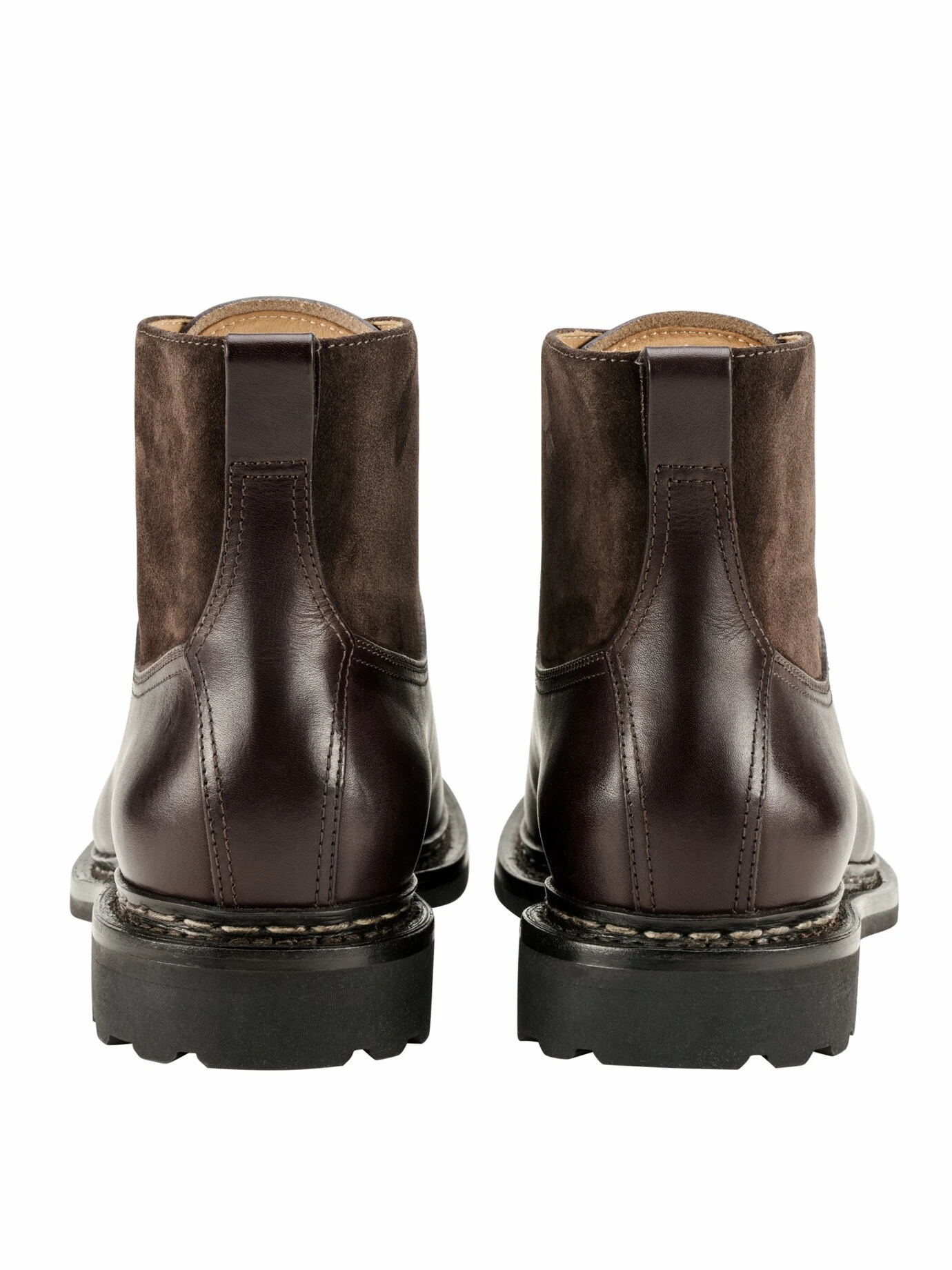 Mehr Handwerk am Fuß geht nicht. Der Schnürboot Cyprus stammt vom Leisten der französischen Werkstätten HESCHUNG, die seit 1934 das traditionelle Schuhmacher-Handwerk beherrschen, offizieller Lieferant des französischen Skiteams waren und bis heute die Reverse-Welt-Konstruktion anwenden. Eine rahmengenähte Machart, die Schuhe für ein ganzes Leben tauglich macht. Hier aus französischem Kalbleder, glatt und rau, Letzteres für die sportive Note.