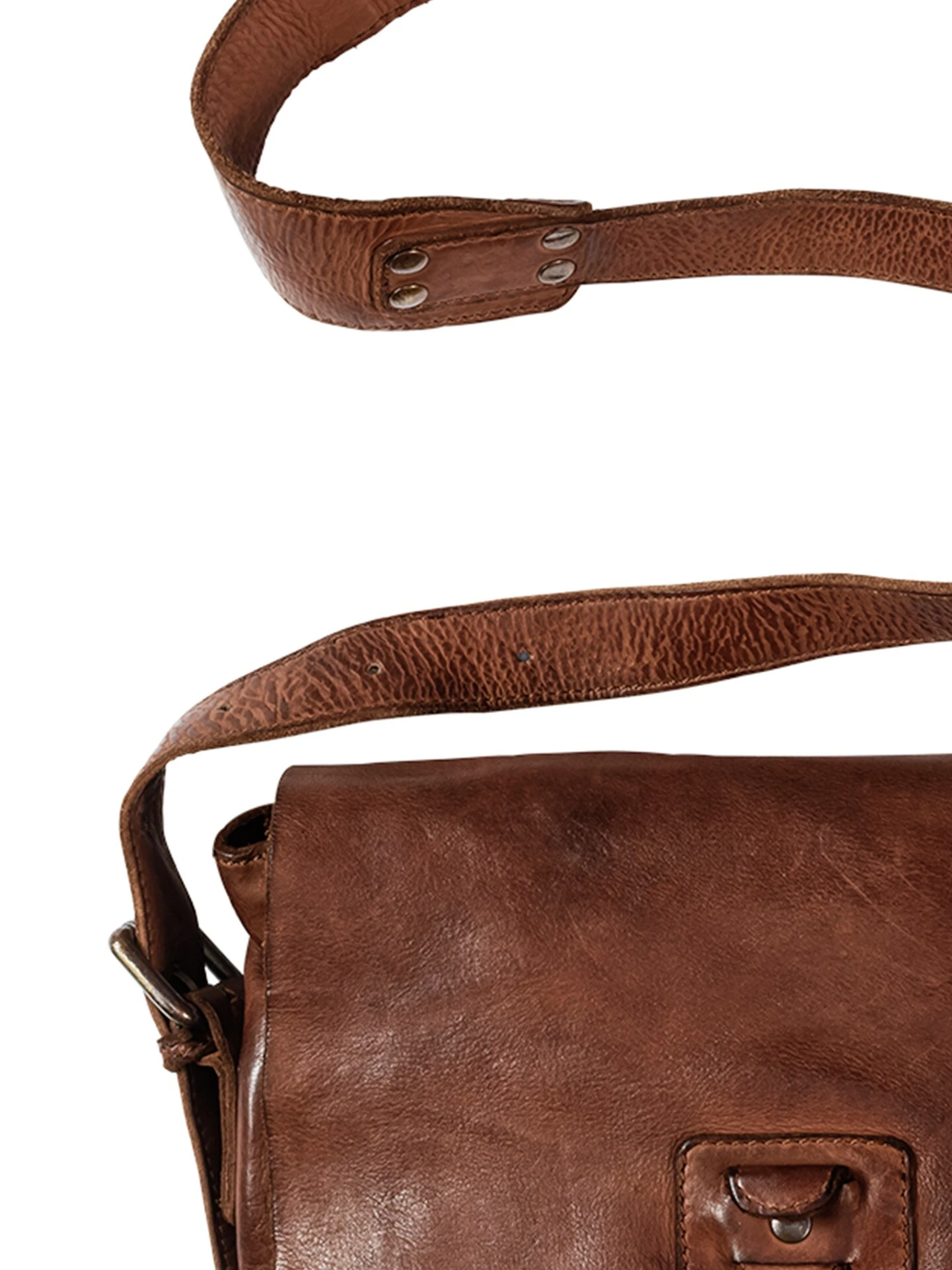 Die gute Organisation ist bei alten Briefträgertaschen abgeschaut. Sie haben die Hände frei und Wichtiges schnell zur Hand. Geräumiges Innenfach für Briefe, Notizbuch, Fahrradjacke und sichere Reißverschlussfächer (innen zum Beispiel für Schlüssel und Portemonnaie, vorne für Parkticket und Grußkarte, hinten fürs Smartphone). Mit schnell zu öffnender Steckschließe. Die Länge verstellen Sie individuell über den Tragegurt, sodass die Tasche lässig über der Schulter hängt. Das Leder ist gewaschen, dadurch weich und knautschig – einfach cool, weil es aussieht, als habe die Tasche schon mehrere Generationen begleitet.