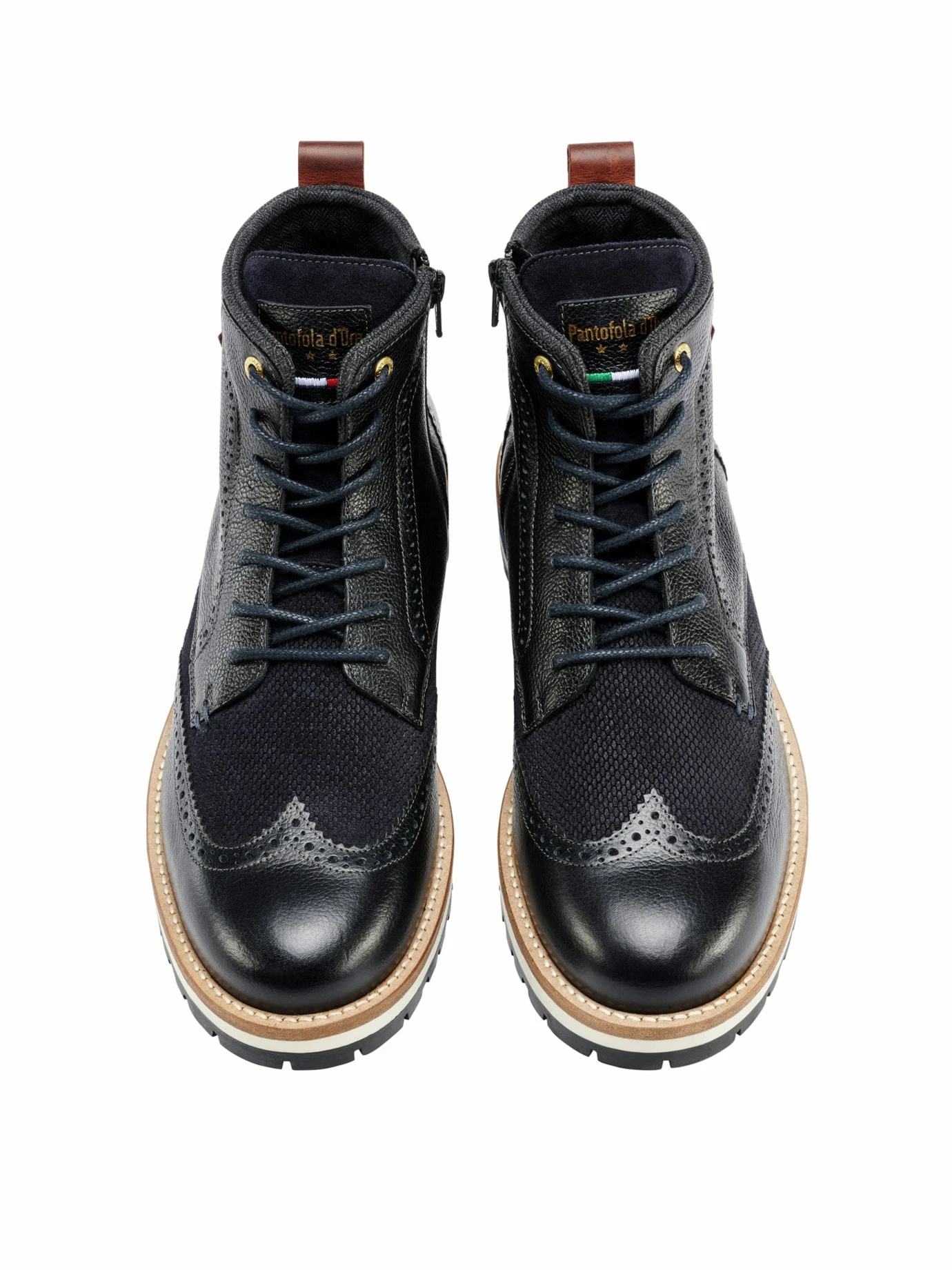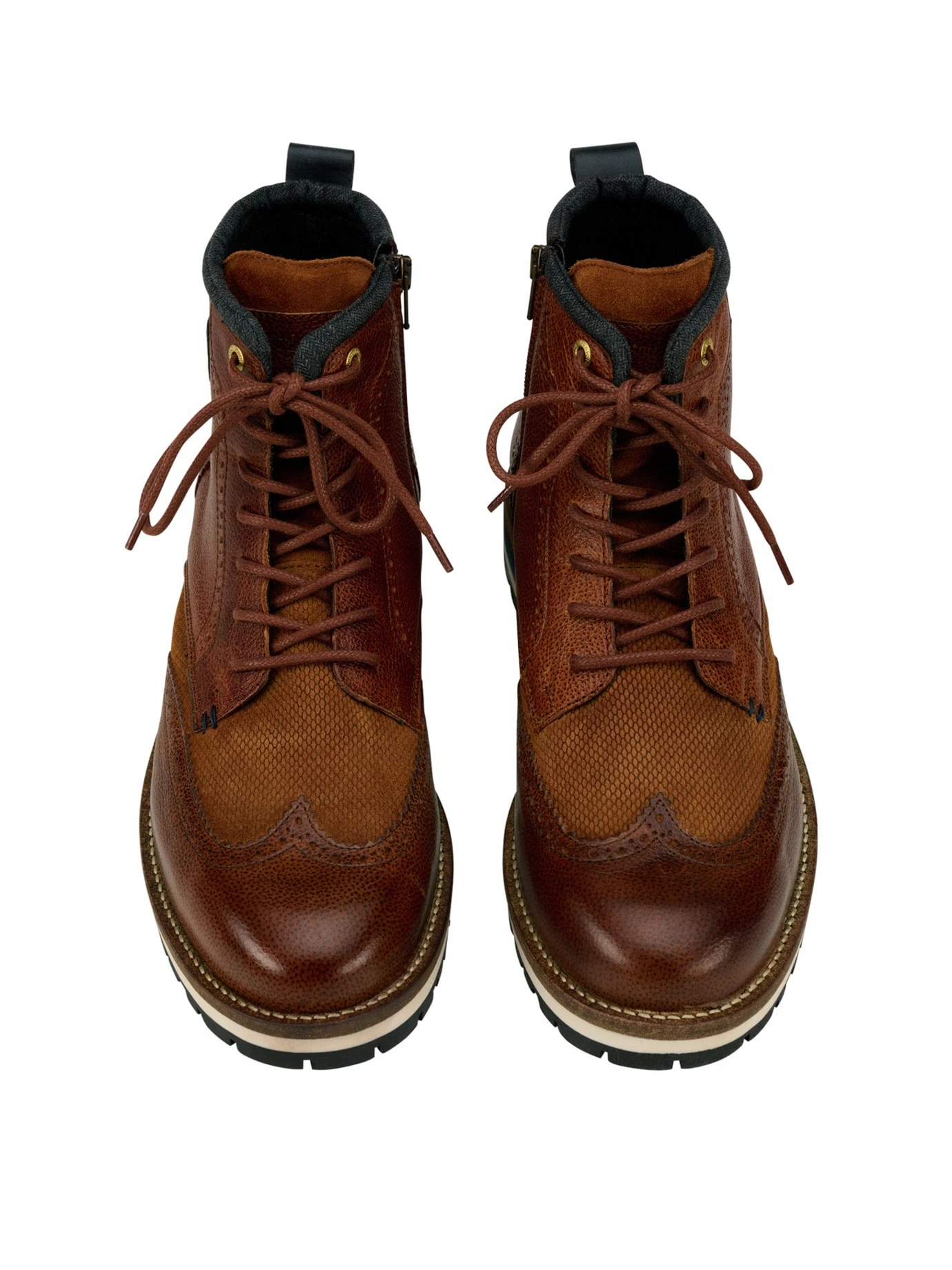 Einer der wenigen Winterboots, die Sie auch zum Anzug tragen können. Gefertigt wie ein klassischer Businessschuh, mit Broken Wing und der typischen Budapester-Lochung. Anständig profilierte Gummisohle, um auf nassen Untergründen Halt zu finden und doch flexibel beim Abrollen und mit ausreichend Fußgefühl zum Autofahren.