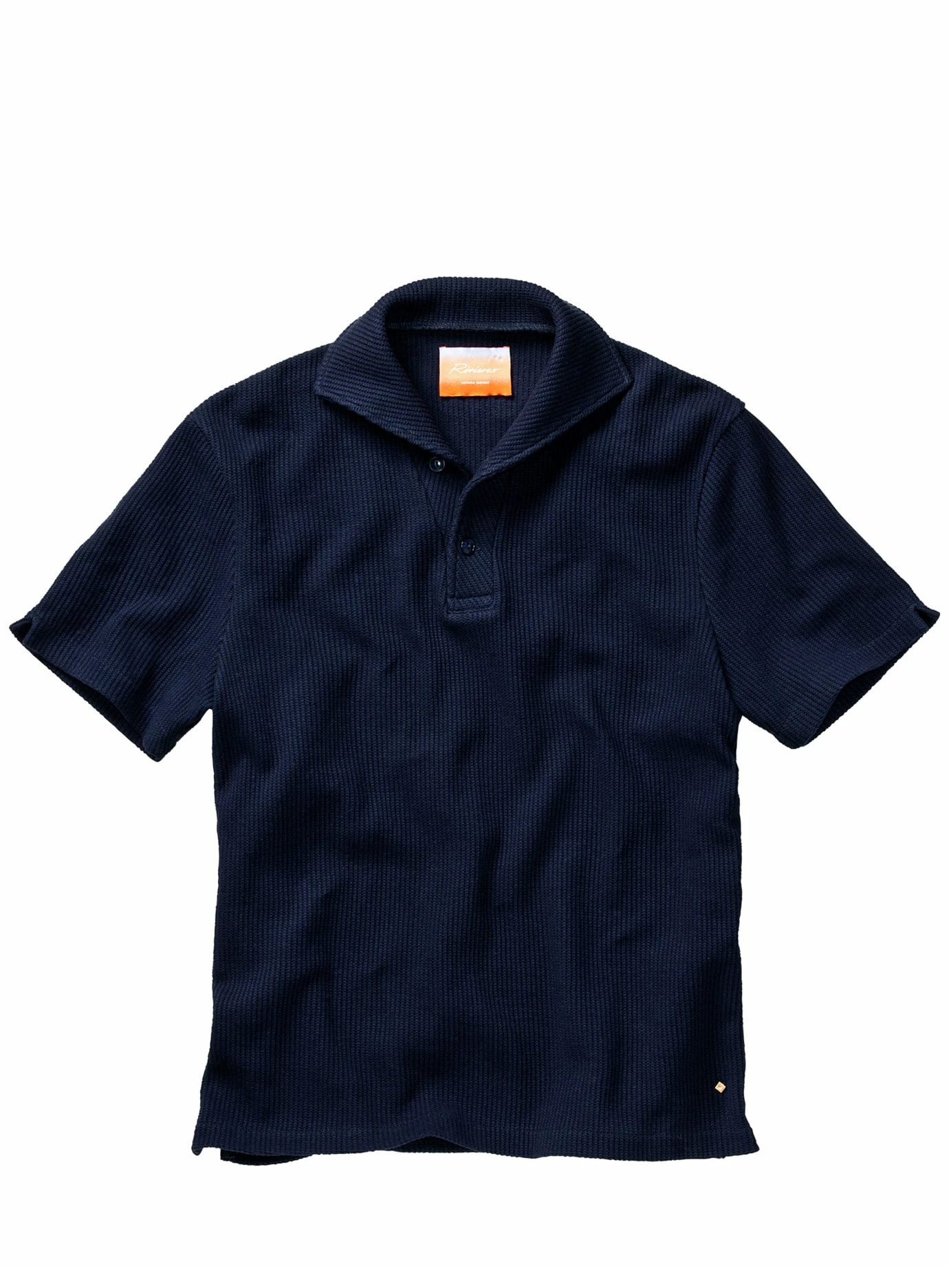 Mit französischem Lebensgefühl. Eigentlich ist Rivieras die Bank für leichtes Schuhwerk, nun übertragen sie ihr Know-how in einer kleinen Kapselkollektion auf Kleidung. Entstanden ist dabei ein Polo aus einem festen Baumwollstrick, das einen guten Stand mit sich bringt. Wenn Sie nur den ersten Knopf schließen, steht der Kragen dank verkürzter Knopfleiste im genau richtigen Winkel offen. Erhabener als ein Piqué, luftiger als ein Sommerpullover: Ein Polo, wie gemacht zum Cabriofahren oder für Tage, an denen Temperaturen schnell wechseln können.