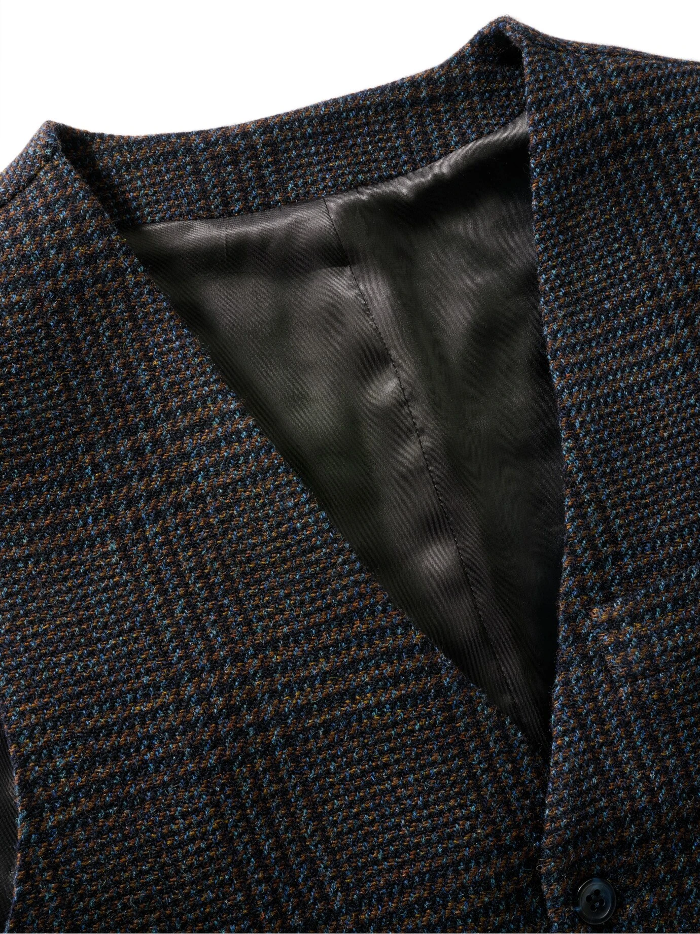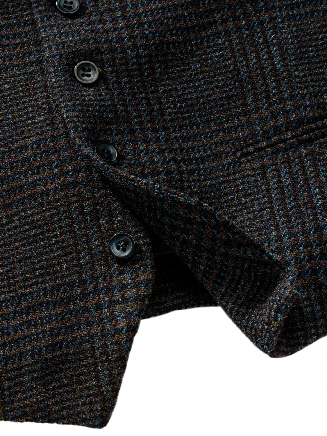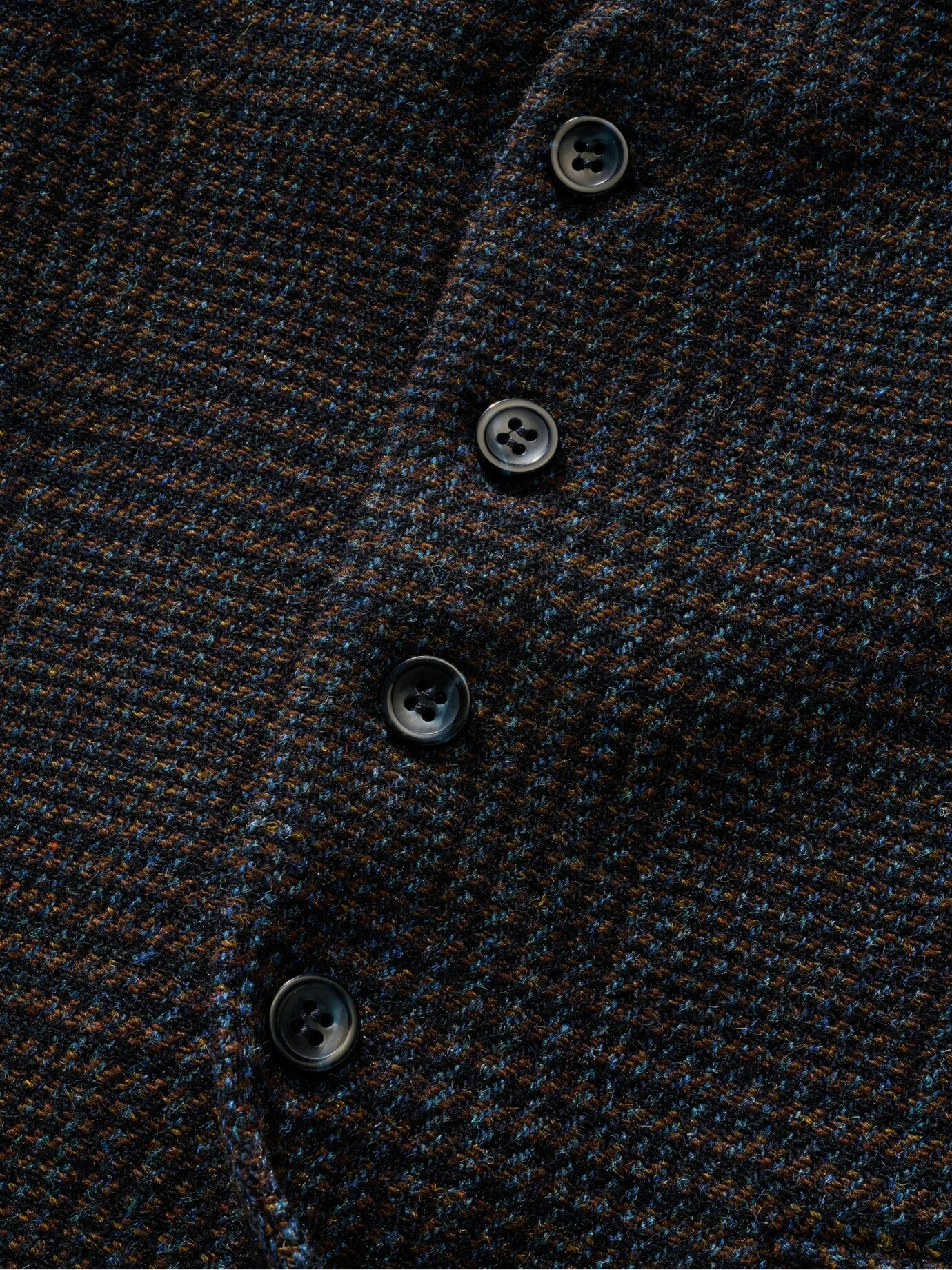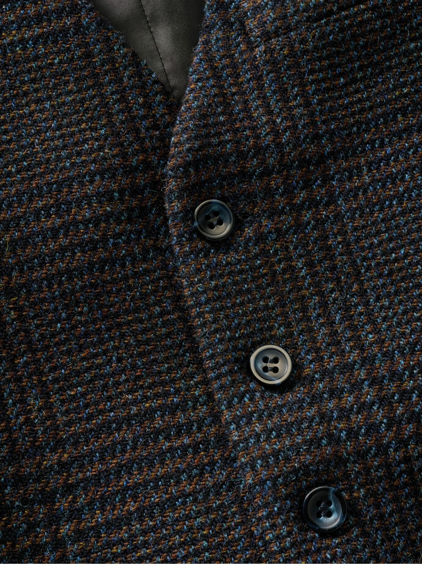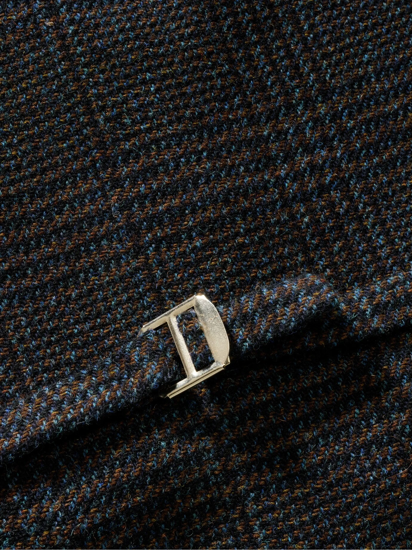 Glencheck mit einem italienischen Lächeln. Die Karoregeln der schottischen Clantrachten sind eine ernste Angelegenheit. Es sei denn, ein kreativer italienischer Weber wie Leomaster zieht die Fäden. So kam das fröhliche, azurfarbene Garn dazwischen. Ein Funke italienischer Chuzpe zwischen edlem Schwarz-Blau und Braun. Das lebt! Vor allem zu blauen Sachen wie Jeans, Tuchhose, Hemd oder T-Shirt. Ein Sakko kann, muss aber nicht, weil Sie mit dem stoffgleichen Rücken immer angezogen wirken.