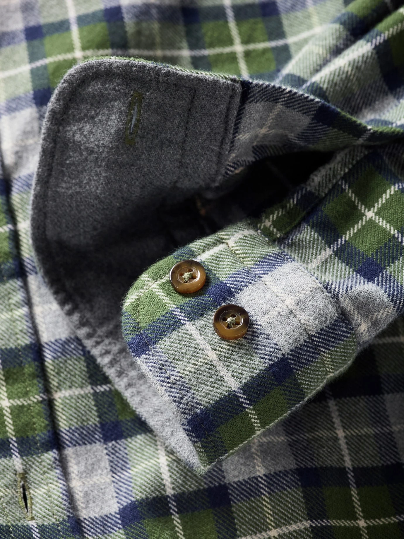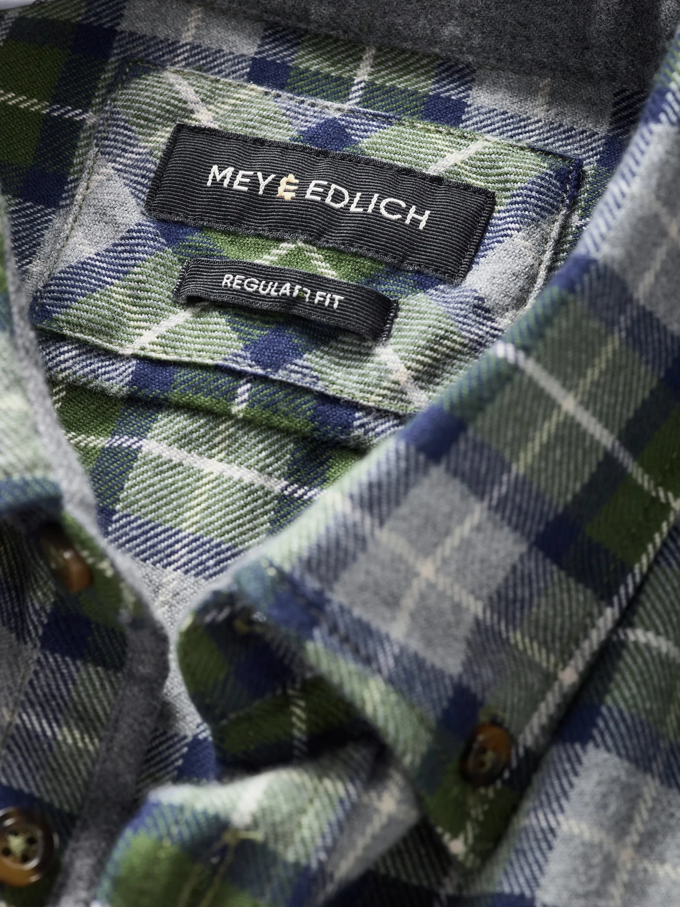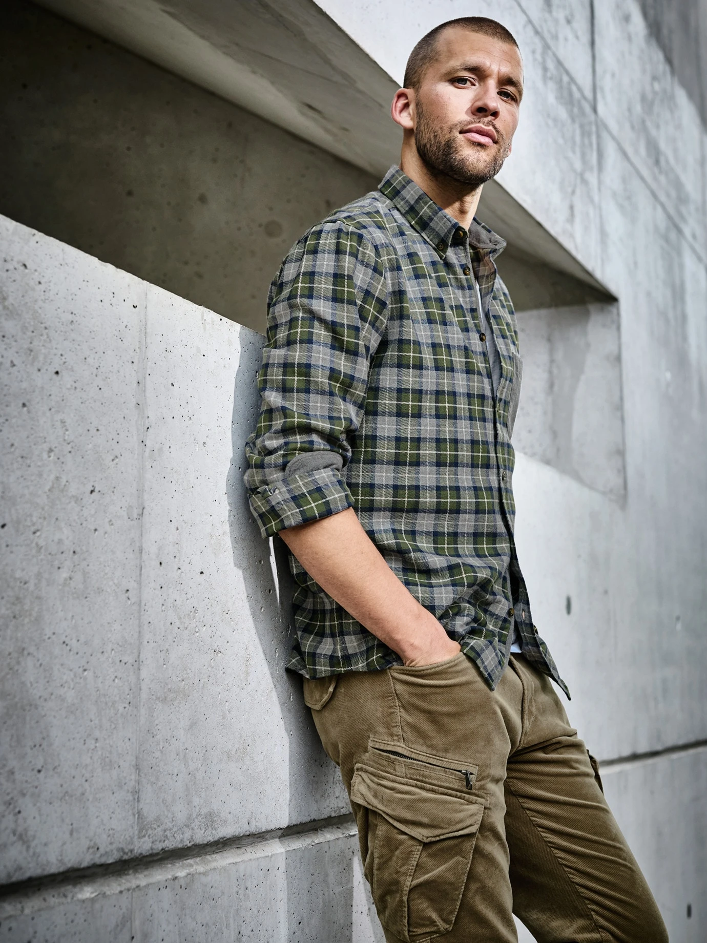 Das Flanellhemd gehört (wieder) zur Grundausstattung der Männergarderobe. Cool und lässig und so entspannt-gemütlich, wie Sie es kennen. Von der Auswahl des Stoffes bis zu den Nähten und Knöpfen ist es bewusst so gefertigt, dass es ungebügelt am besten aussieht. Gearbeitet aus feiner, dichter Baumwolle, die es strapazierfähig und ewig haltbar macht. Der Schnitt ist etwas kürzer, damit Sie das Hemd auch über der Hose tragen können. Prägnantes Karo mit viel Grün, Blau und Ecru, wodurch Sie es wunderbar zu blauen Hosen und – in etwas rebellischer Anmutung – auch zu schwarzen tragen können.