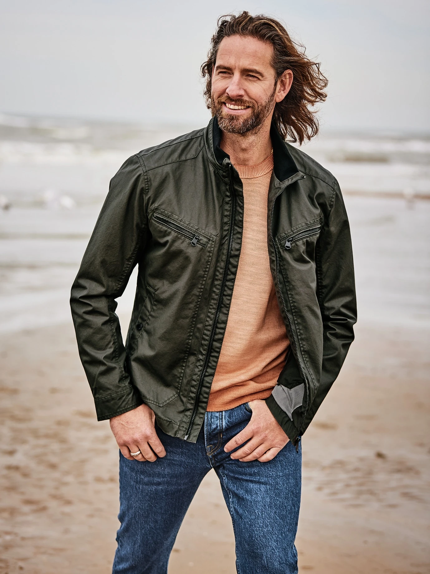 Verarbeitung: Solides Jackendesign in Form eines coolen Blousons (so haben Sie die Wachsjacke sicher noch nicht gesehen), mit einer männeraffinen Anzahl an Taschen (vier außen, drei innen) und dem verstärkten, schützenden Stehkragen. Regular Fit.