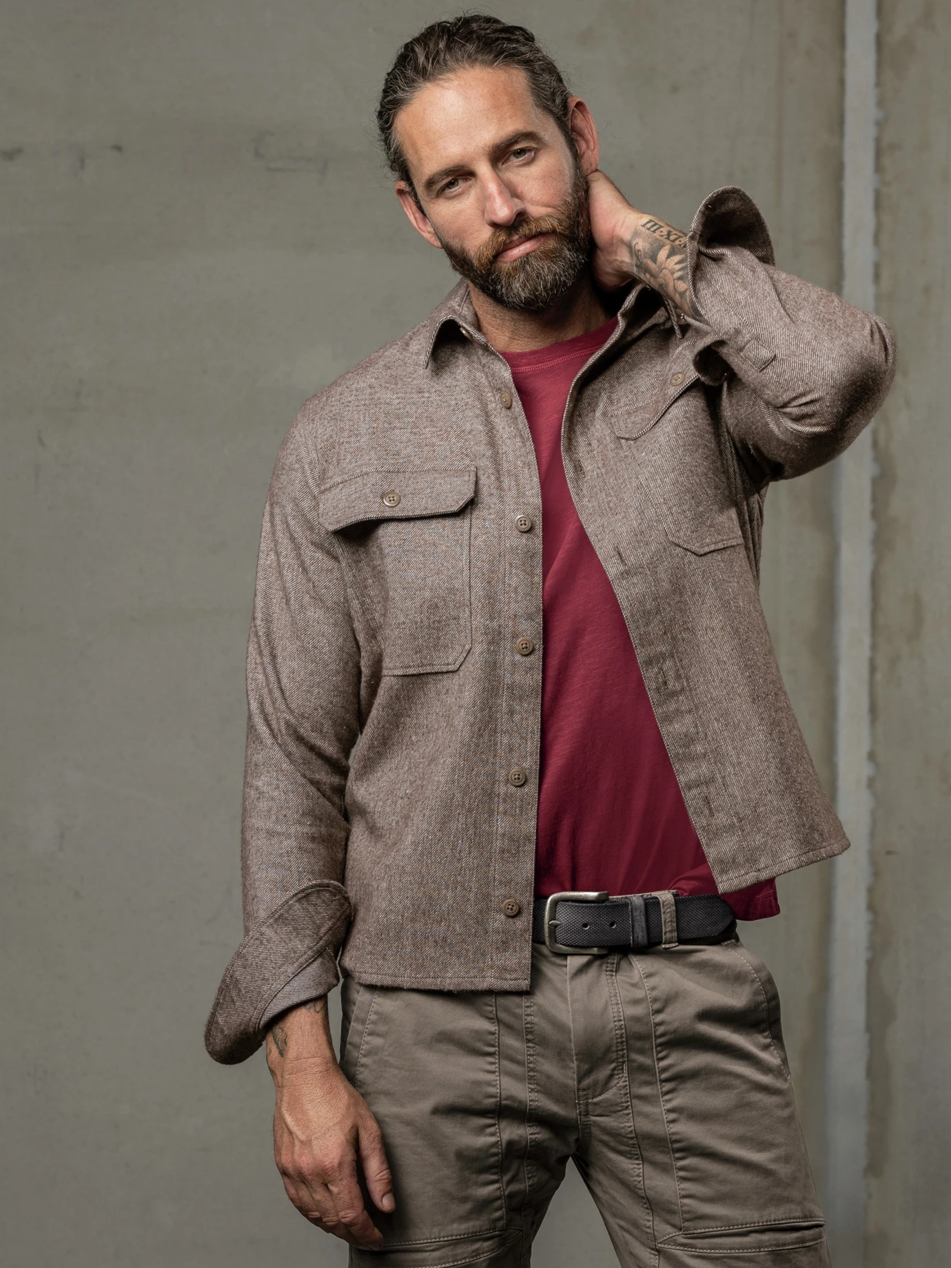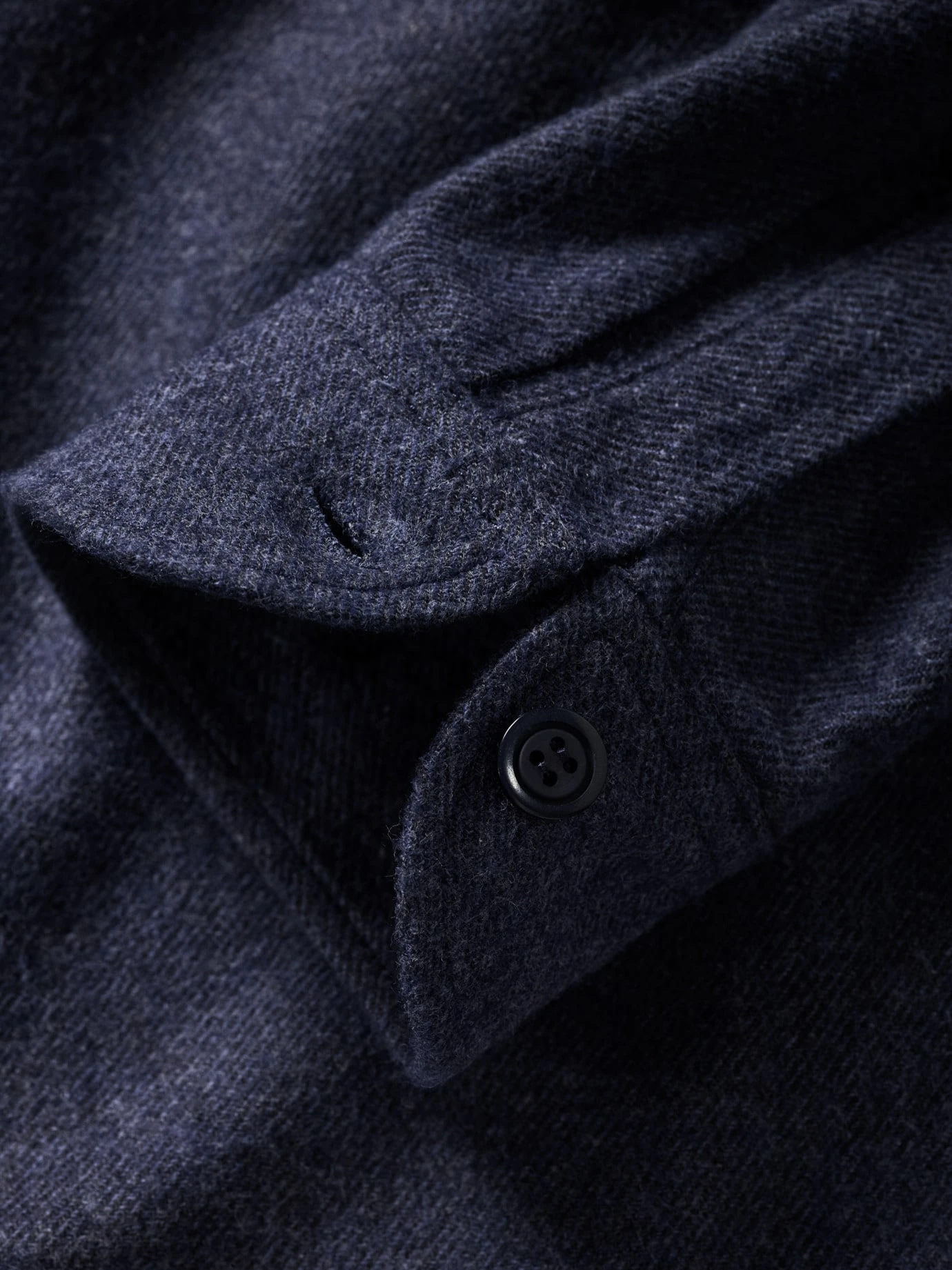 Schrödinger’s Cat als Kleidungsstück. Aber natürlich ohne zu kratzen. Irgendwie Jacke und irgendwie auch wieder nicht. Irgendwie Hemd und irgendwie nicht. Irgendwie uni und irgendwie doch wieder nicht. Dieses weiche Flanell-„Shacket“ lässt sich nicht in Normen pressen – es hat ein eher subtiles Revoluzzer-Gen, ohne dabei zu laut zu sein. Leicht changierender, zweifarbiger Twill. Schwer zu beschreiben, aber einfach zu kombinieren. Echter Jackenersatz, z.B. zu Jeans und Boots.