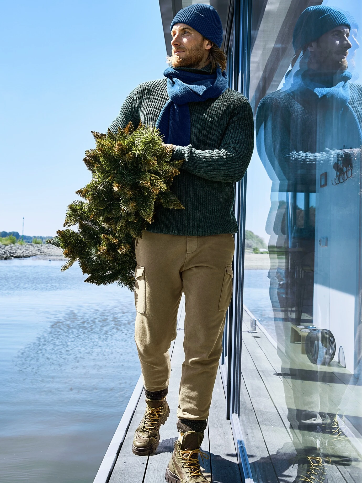 Ihn bindet ein Liebhaber zur Natur. Inspiriert ist seine Farbe vom ältesten britischen Forest Park – dem Galloway Forest Park. Satte Farbe wird hier übertragen auf kernigen Strick. Natürlich aus reiner Schurwolle, genauer Lamm, die wärmt ordentlich, Sie überhitzen aber auch nicht drunter.