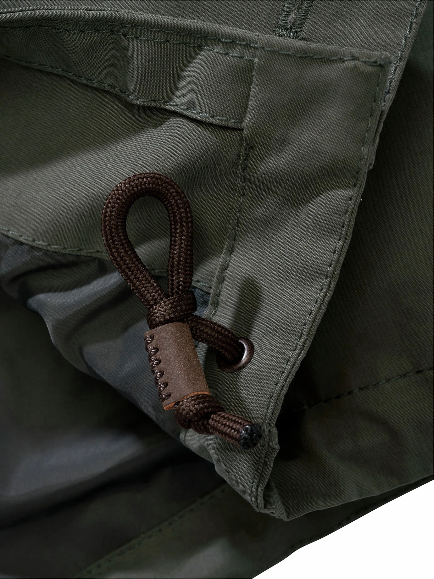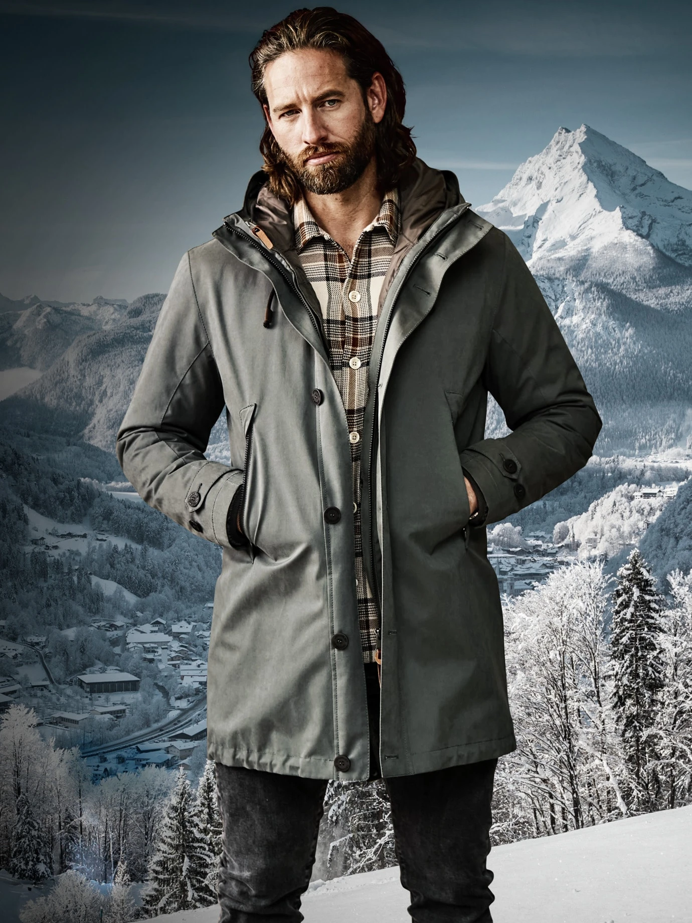 Besser als Meteorologie. Dieser Parka ist auf alles und das ganze Jahr vorbereitet. Wird es kühler und gegebenenfalls nass, werfen Sie sich den Parka über. Der dicht gewebte Stoff aus Baumwolle und Hightech erinnert an die geliebte Wachsjacke, weist Regen ab und schützt vor Wind. Ist es kühl und sonnig, tragen Sie die innere Steppjacke – das leichte Fibre-Fill-Futter wärmt wie echte Daune. Wird’s richtig kalt, tragen Sie Parka und Steppjacke gemeinsam. Viel Funktion, die sich dank des guten Designs nicht aufdrängt. Natürlich mit parka-typischem Schwalbenschwanz.