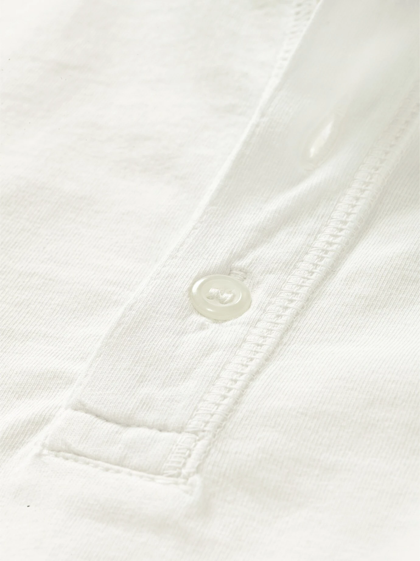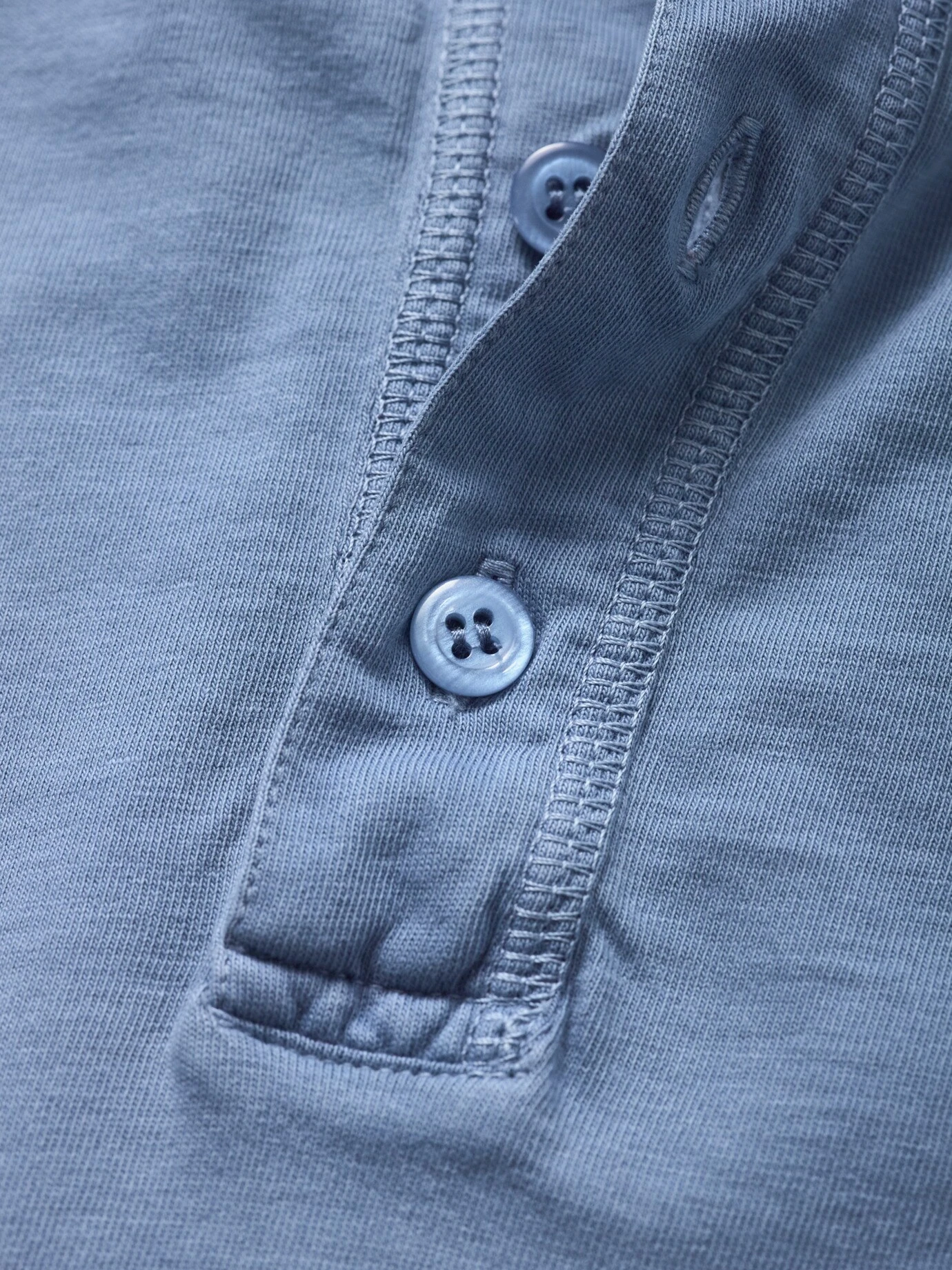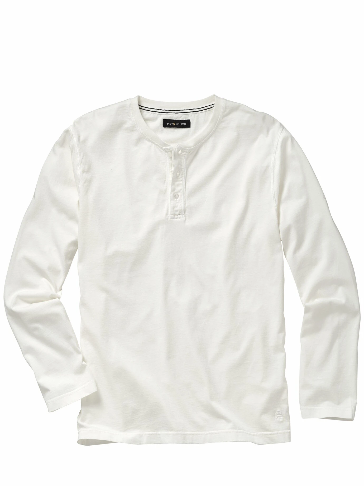 Für Vorantreiber entwickelt. Noch immer haftet dem Henley, das seinen Ursprung im Rudersport trägt, eine kraftvolle Aura an. Wichtig ist, dass Kopfleiste samt Kragen selbst aufgeknöpft anliegen, letzterer wird hier durch eine feine Rippe verstärkt. Ansonsten aus blickdichtem Baumwolljersey, für starke Schultern sind die Nähte zusätzlich stabil verstärkt. Schwört den Bund auf (fast) jede Hose und wirkt auch unterm Blouson oder sportlichen Sakko.