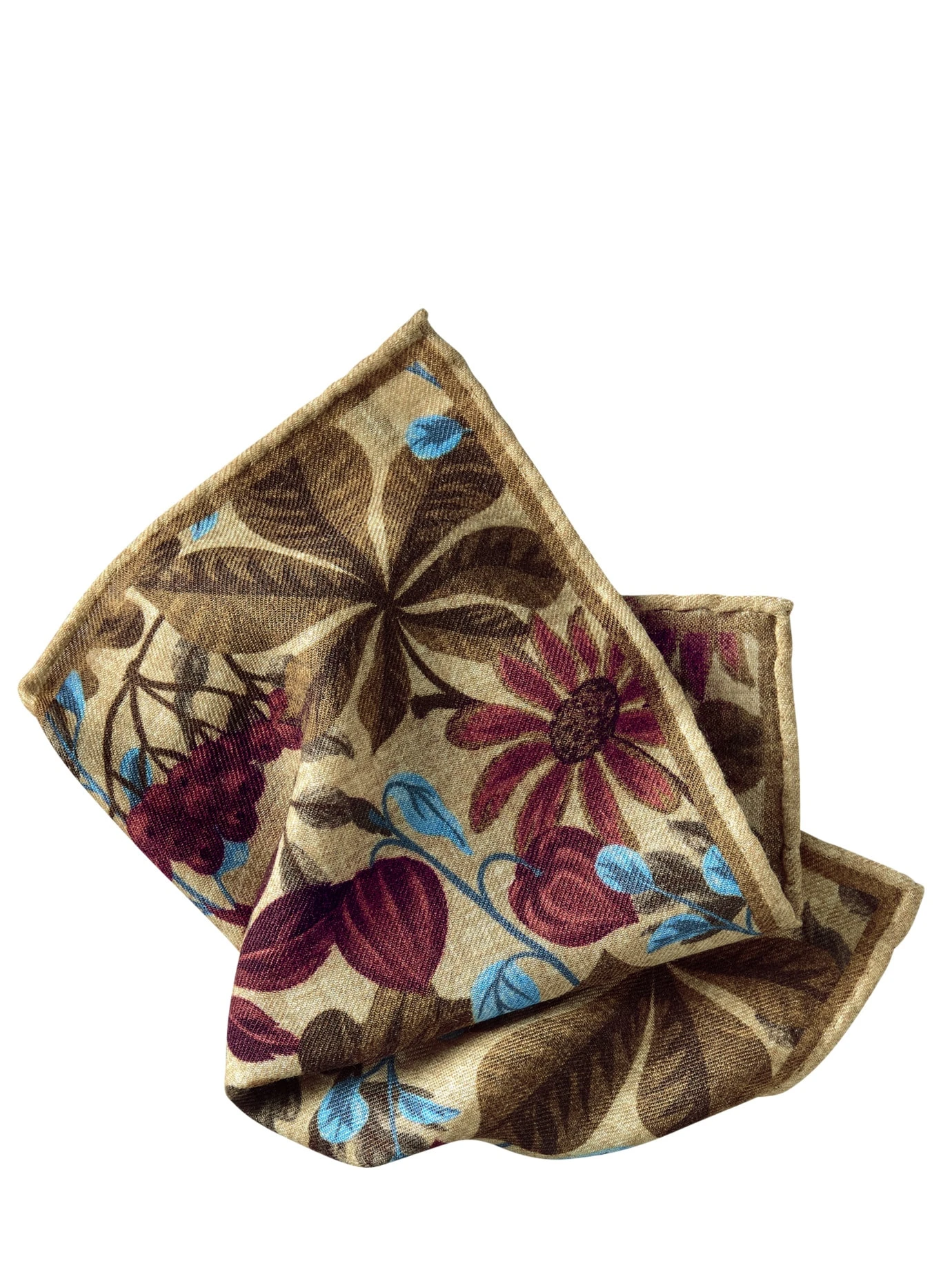 Etwas Folklore in der Sakkotasche. Greifen Sie ruhig zu Ausgefallenem, wenn es darum geht, bei einem klassischen Outfit Akzente zu setzen. Wie mit diesem Einstecktuch, bei dem Bauernmalerei wie aus der guten Stube auf einen derben italienischen Twill aus reiner Wolle gedruckt wird. Schön zu robusten Stoffen.