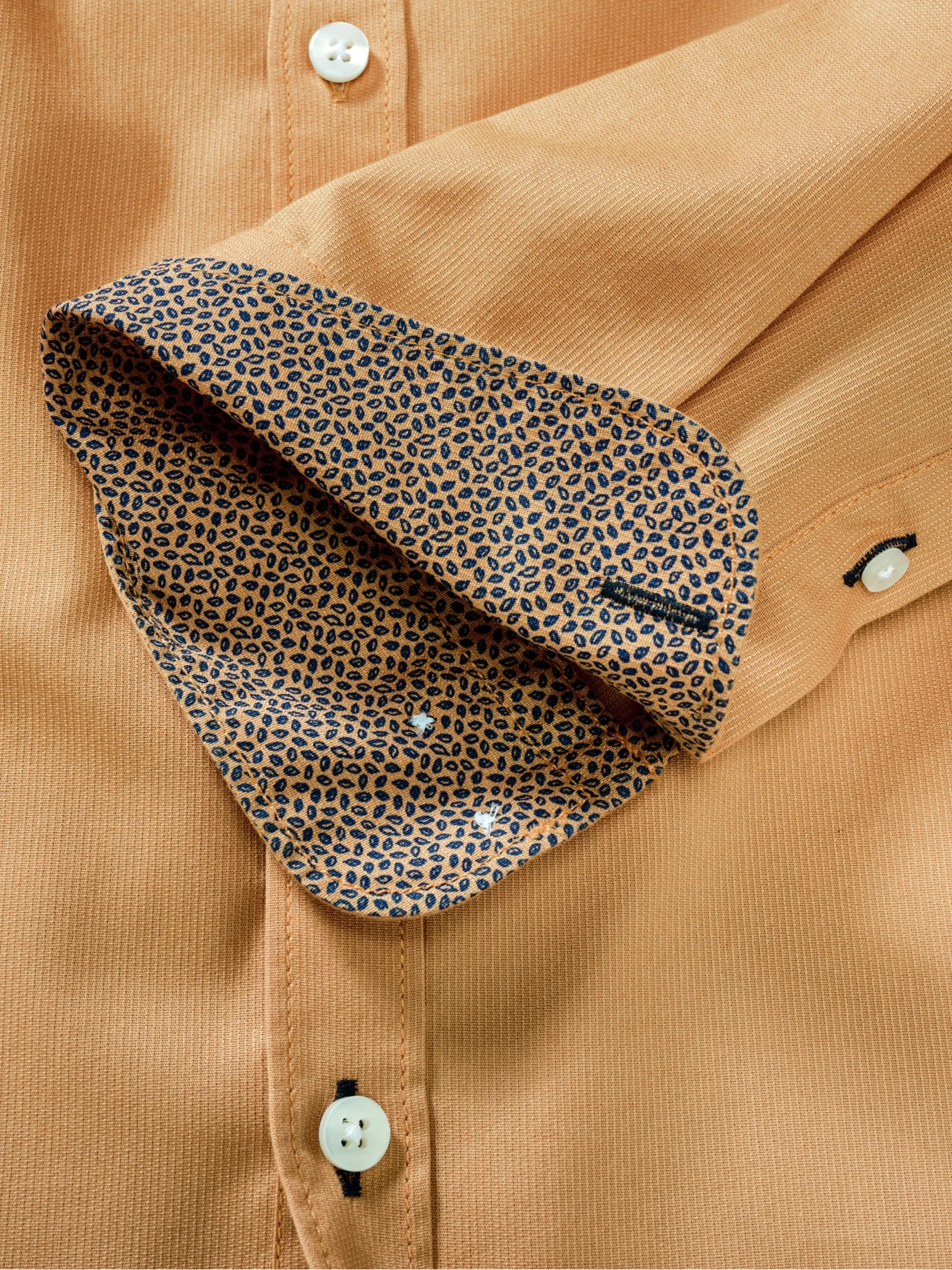 Passend, aber nicht angepasst. Nein sagen können, Flagge zeigen, Plan B durchziehen. Dieses Office-Hemd steht für einen aufrechten Stil, der sich nicht hinter Standards versteckt. Die feinen Rippen im Stoff wirken standfest. Besonders schön kommen sie ungebügelt zur Geltung. Das Hemd entwickelt dadurch so etwas wie eine eigene, vom Träger beeinflusste Handschrift. Verstärkt durch innen liegende Kontrastdetails, die sich nur zeigen, wenn man die Ärmel hochkrempelt und den obersten Knopf öffnet.