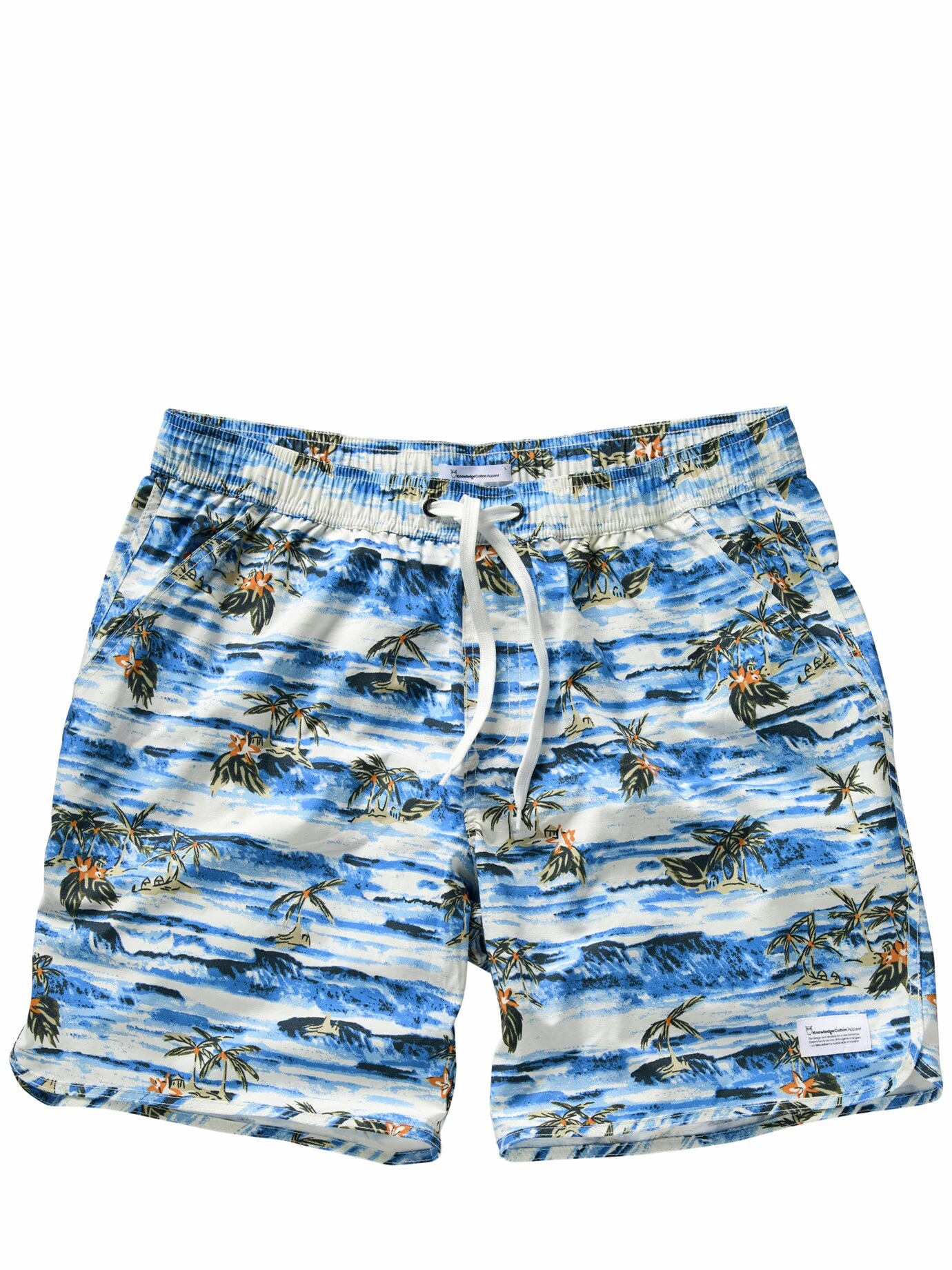 Beachfeeling zum Anziehen. Meer, Wind, Schaumkrönchen auf den Wellen, Inseln, Palmen, Blüten – das Design dieser Badeshorts lässt Sie die salzige Luft schon schmecken und den Sand zwischen den Zehen bereits spüren. Der gekonnte Schnitt macht gute Beine, Hightechfasern sorgen für Flexibilität und rasches Trocknen im Wind. Trageempfehlung: mit weißem T-Shirt, schickem Strandtuch, gebräunter Haut und Flip Flops. Abflug!