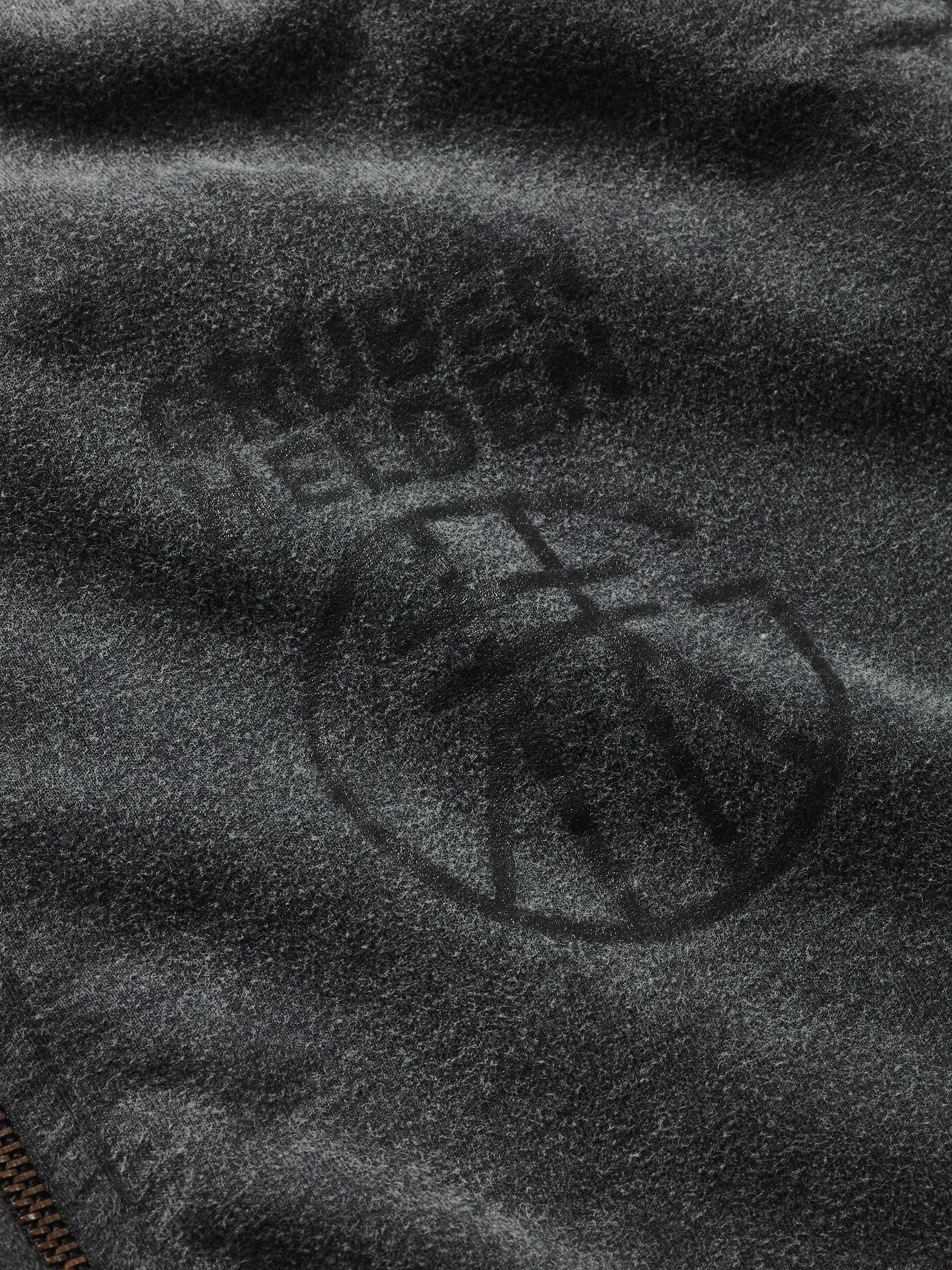 Verarbeitung: Zwei Taschen vorne. Kapuze mit Förderturm-Metall-Button und kohleschwarzen Kordeln. Steigerliedtext auf der Innenseite. Reißverschluss mit Grubenmarke am Schlitten. Regular Fit.