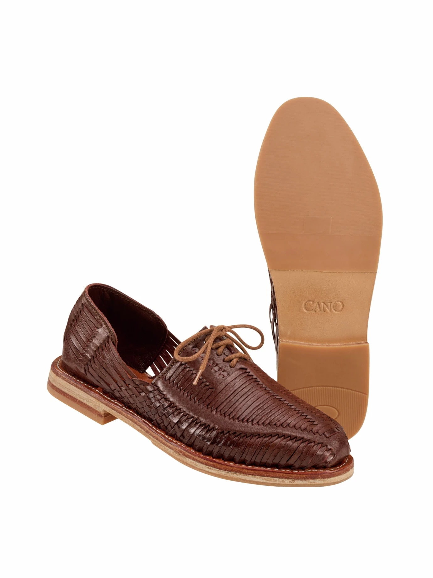 Mexikanisches Handwerk trifft auf britische Eleganz. Bis zu vier Stunden wird in Mexiko an einem Schuh gewebt, neben Geschick, Mühe und Können setzt Cano zusätzlich vor Ort auf ökologische und soziale Nachhaltigkeit. Top! Vom Stil ein Oxford, den Sie barfuß tragen. Die Lederriemen aus pflanzlich gegerbtem Rindleder passen sich nach etwas Eintragen exakt Ihrer Fußform an, die Innensohle ist zusätzlich weich und ergonomisch gepolstert.