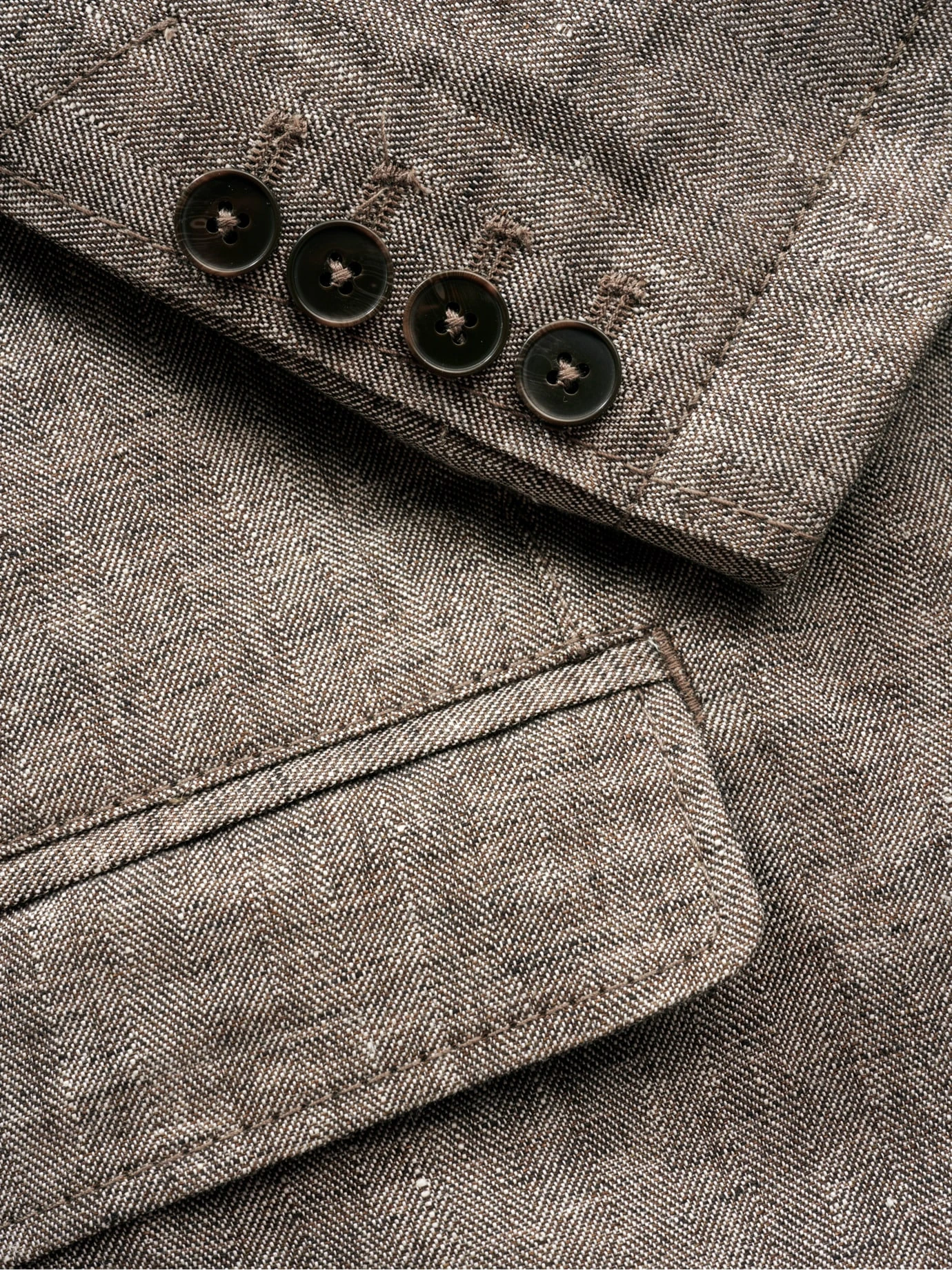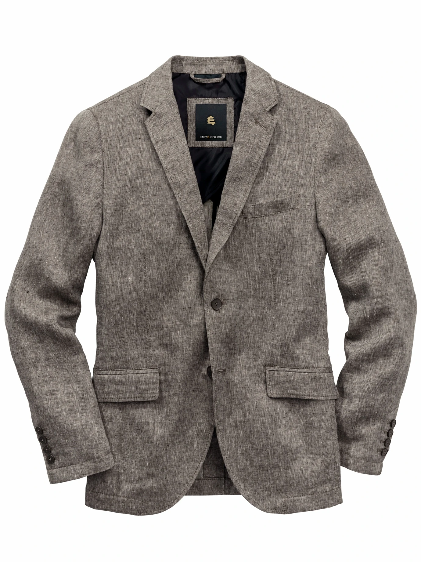 Für die schönsten Tage des Jahres. Wenn es draußen heiß und angemessene Garderobe unerlässlich ist: Dann hat dieses Sakko seinen großen Auftritt. Das kann die Sommerhochzeit der Tochter sein oder die Premierenfeier in Berlin am heißesten Tag des Jahres. Während Sie in anderen Sakkos mehr Wasser verlieren, als Sie an Getränken zu sich nehmen können, sind Sie mit diesem Leinensakko bequem, leicht und angemessen gekleidet. Es schlägt, wie es sich für hochwertiges Leinen gehört, sanfte Knitter und wirkt angezogen sehr lebendig. Auch mit passender Anzughose erhältlich (Nr. 24-7347-9).