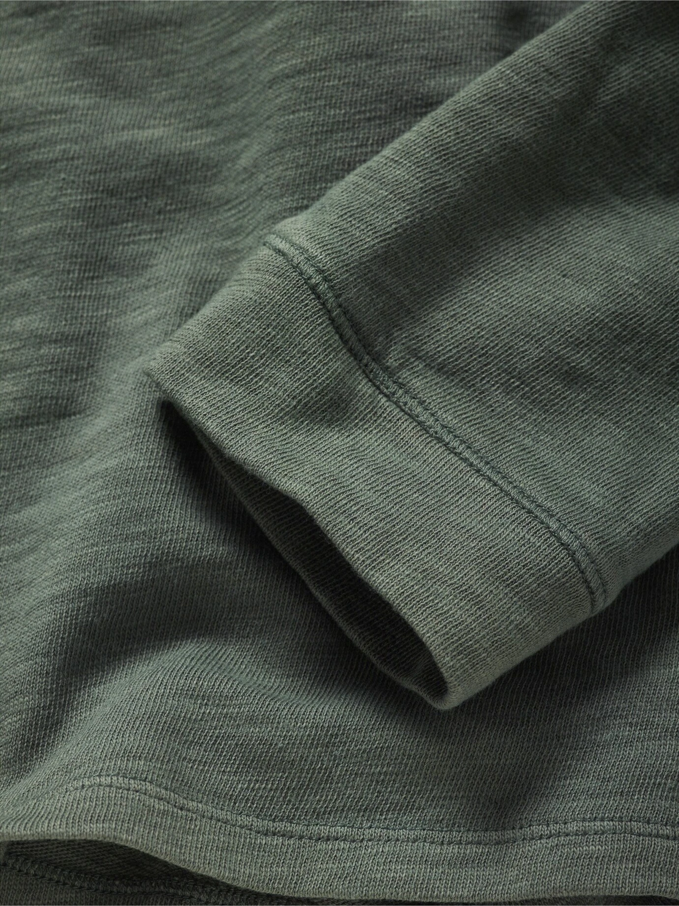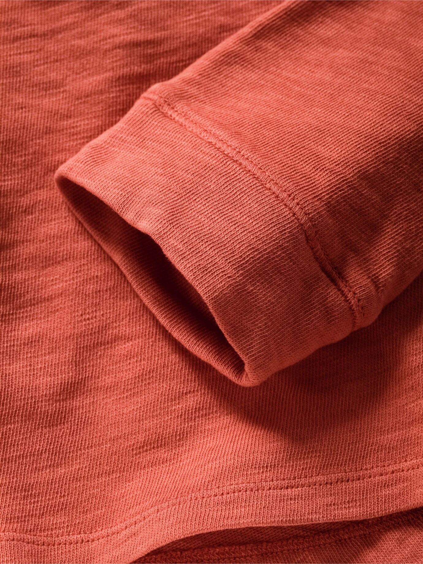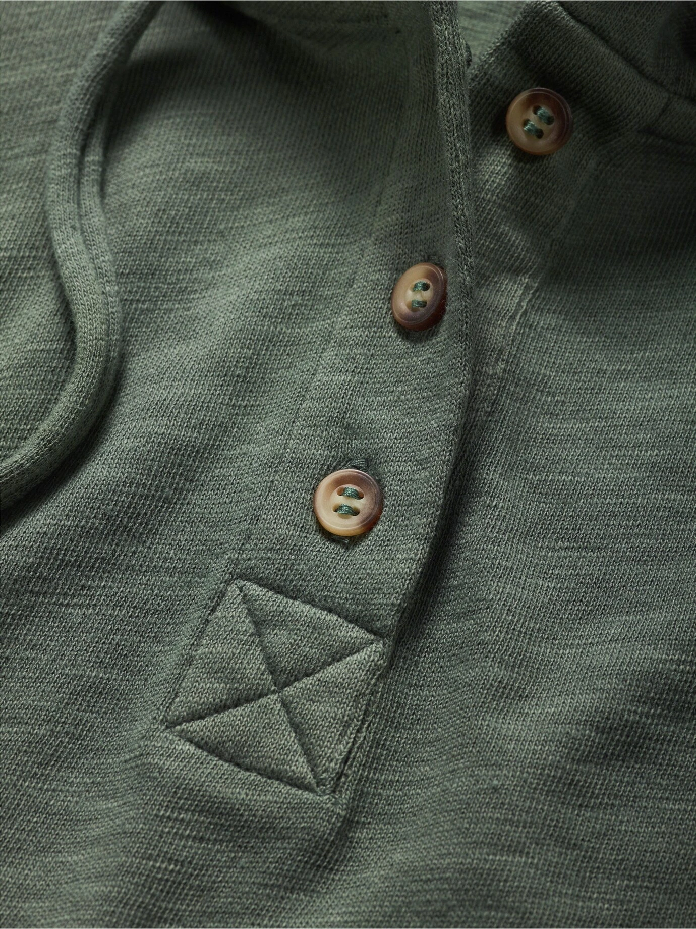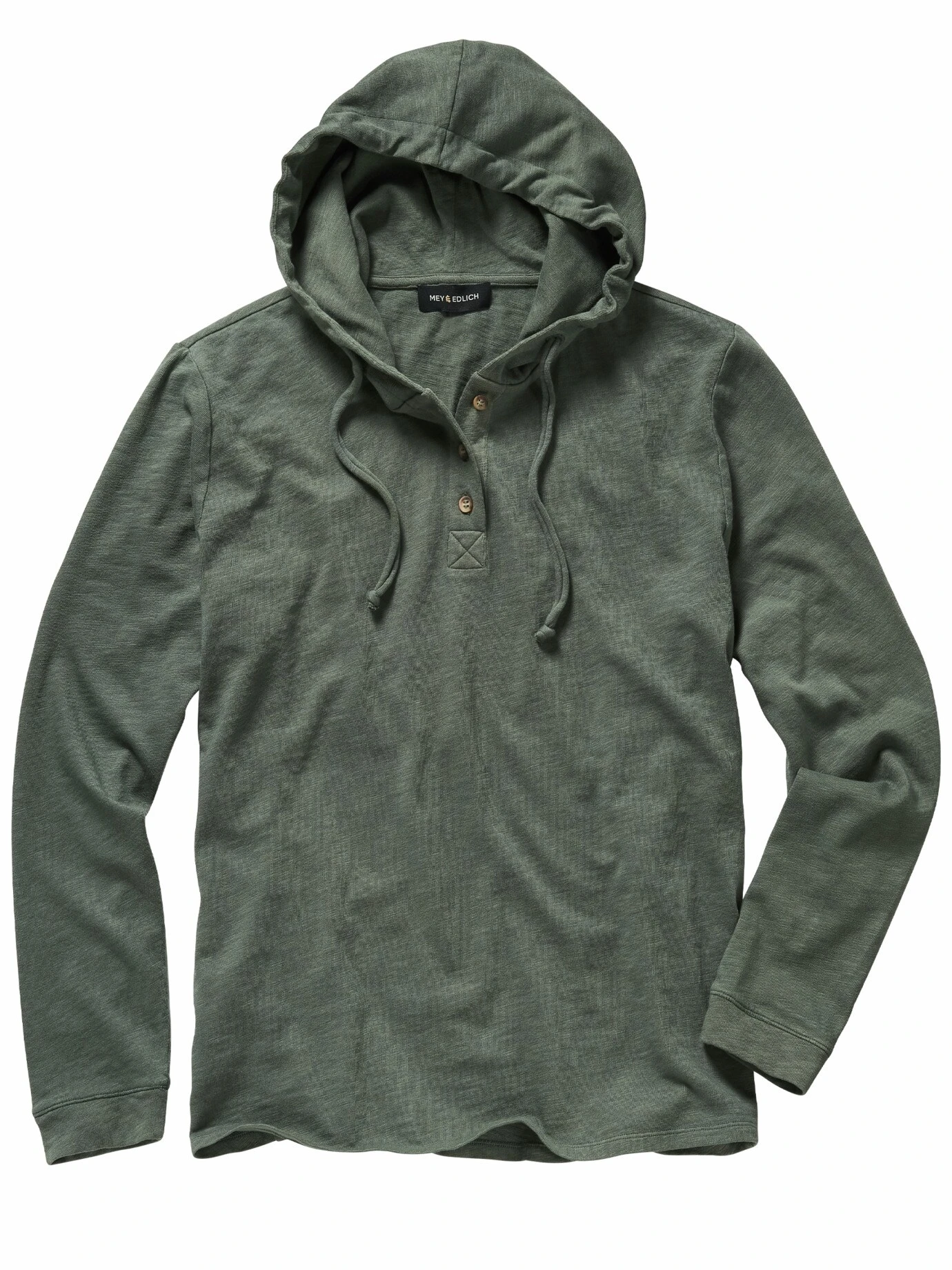 Die reine Freude an lauen Abenden. Und eine Freude, die Sie über das ganze Jahr begleiten wird. Mit seinen 210 Gramm Flammgarn fühlt er sich leicht an wie ein Longsleeve. Nur eben mit Kapuze gegen den kühlen Abendwind am Flussufer (drunter passt auch ein T-Shirt). Wird’s doch wärmer, bleiben die obersten Knöpfe offen. Tragen Sie ihn solo zur Jeans oder Chino, an kühleren Tagen unter einer Jacke. Oder im Day-Pack, wenn Sie noch nicht so genau wissen, was kommt.