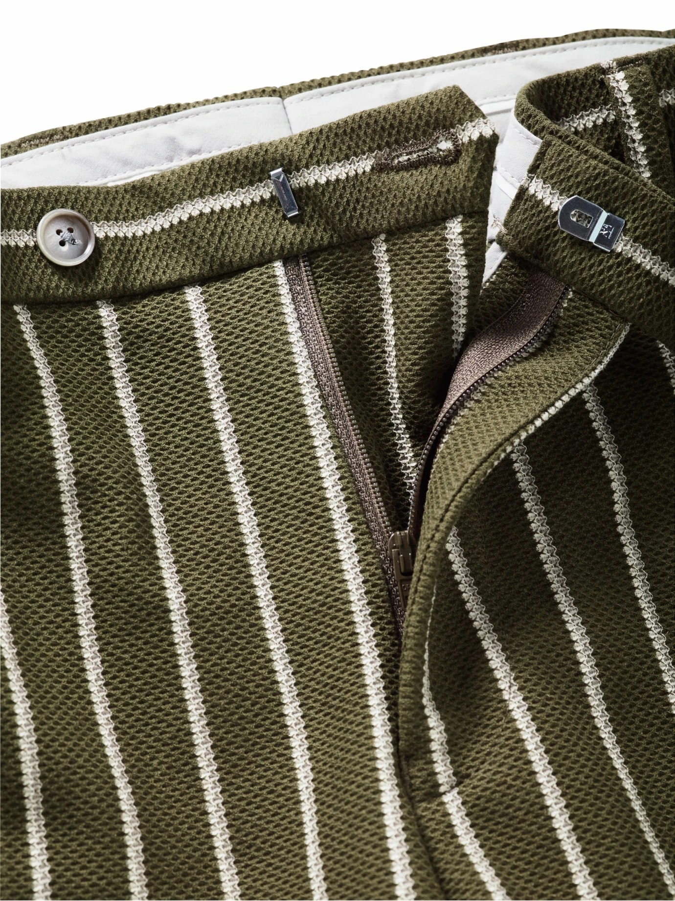 Steht nicht auf dem Balkon, sondern mitten im Geschehen. Die Farbe und Kaktus-Struktur der feinen Streifen sorgen auf jeder Party für Gesprächsstoff. Wichtige Info für Sie: Die Hose fühlt sich gut an, fast wie selbstgestrickt. Die Materialmischung fällt locker, hat einen festen Stand und knittert nicht. Ihre ernsthafte Seite zeigt die Hose bei der Verarbeitung: zwei französische Taschen vorne, zwei geknöpfte Taschen hinten, farbige Paspel im Bund. Damit beim Outfit alles im grünen Bereich bleibt, empfehlen wir ein Hemd oder Shirt in neutralen Farben und für den vollen Show-Effekt das passende Sakko (Nr. 24-6291-6).