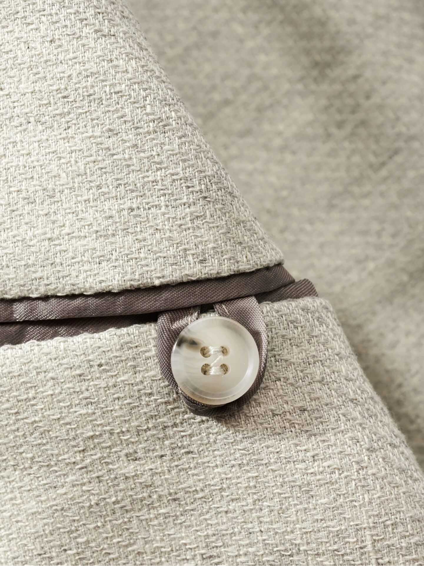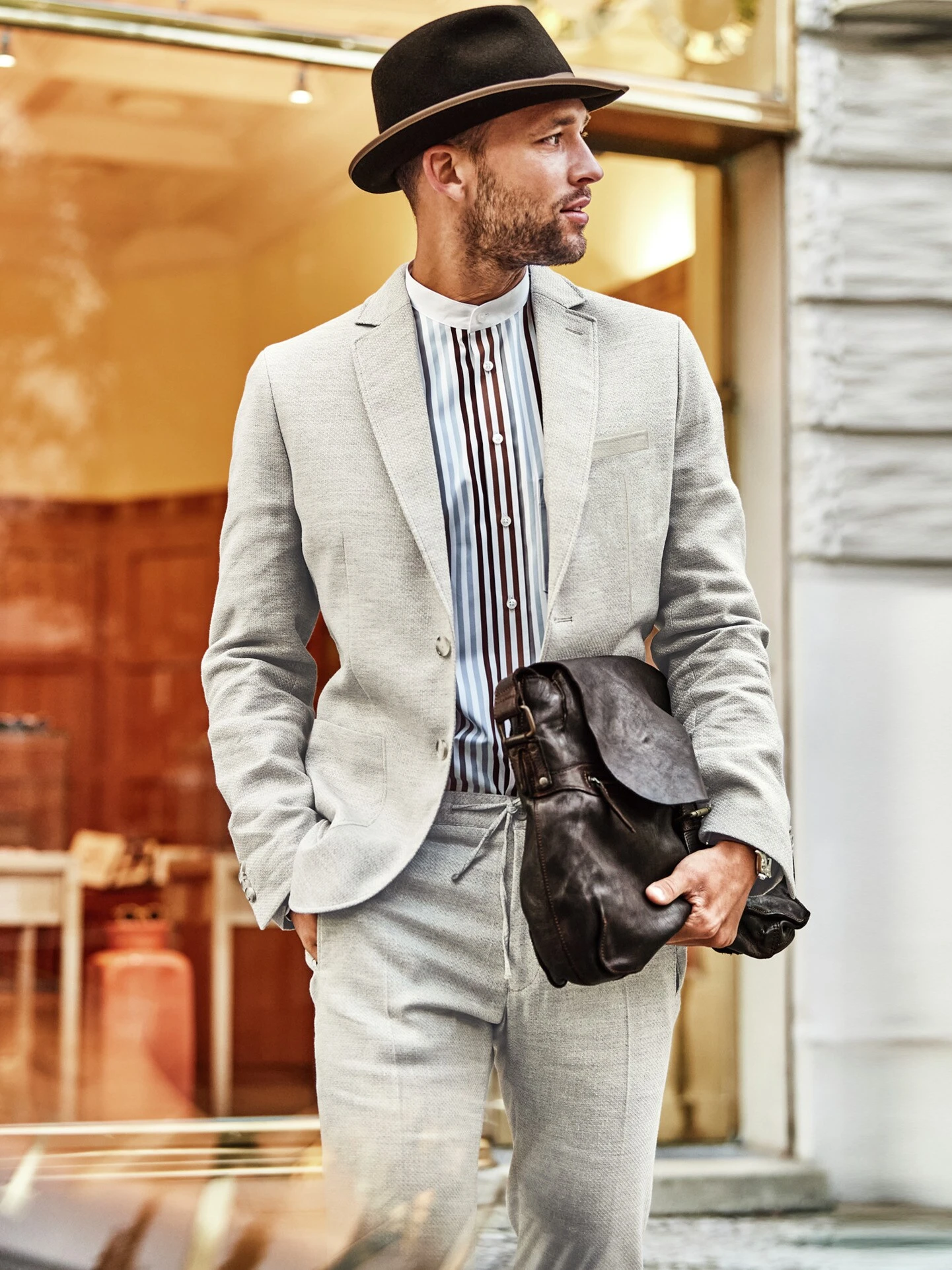 Besser aussehen bei 32 Grad. Mit einem luftig geschnittenen Leinensakko sind Sie auch bei tropischer Hitze gut angezogen. Und sehen selbst nach einem Ausfall der Klimaanlage besser aus als andere. Für die Praxis sind diesem Leinenstoff hochwertige Hightechfasern zugegeben, damit er weicher, fließender und strapazierfähiger wird. Als Anzug zu tragen mit gleichnamiger Hose (Nr. 24-7379-0).