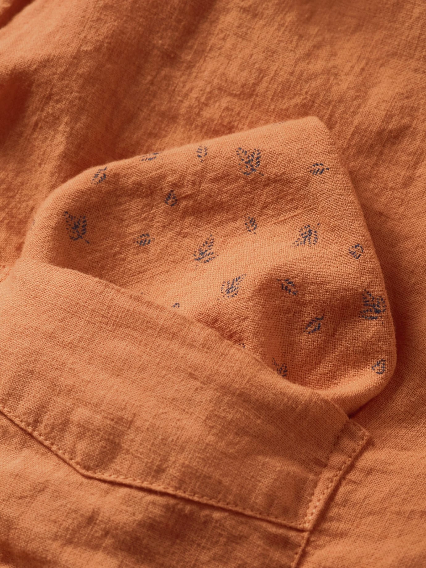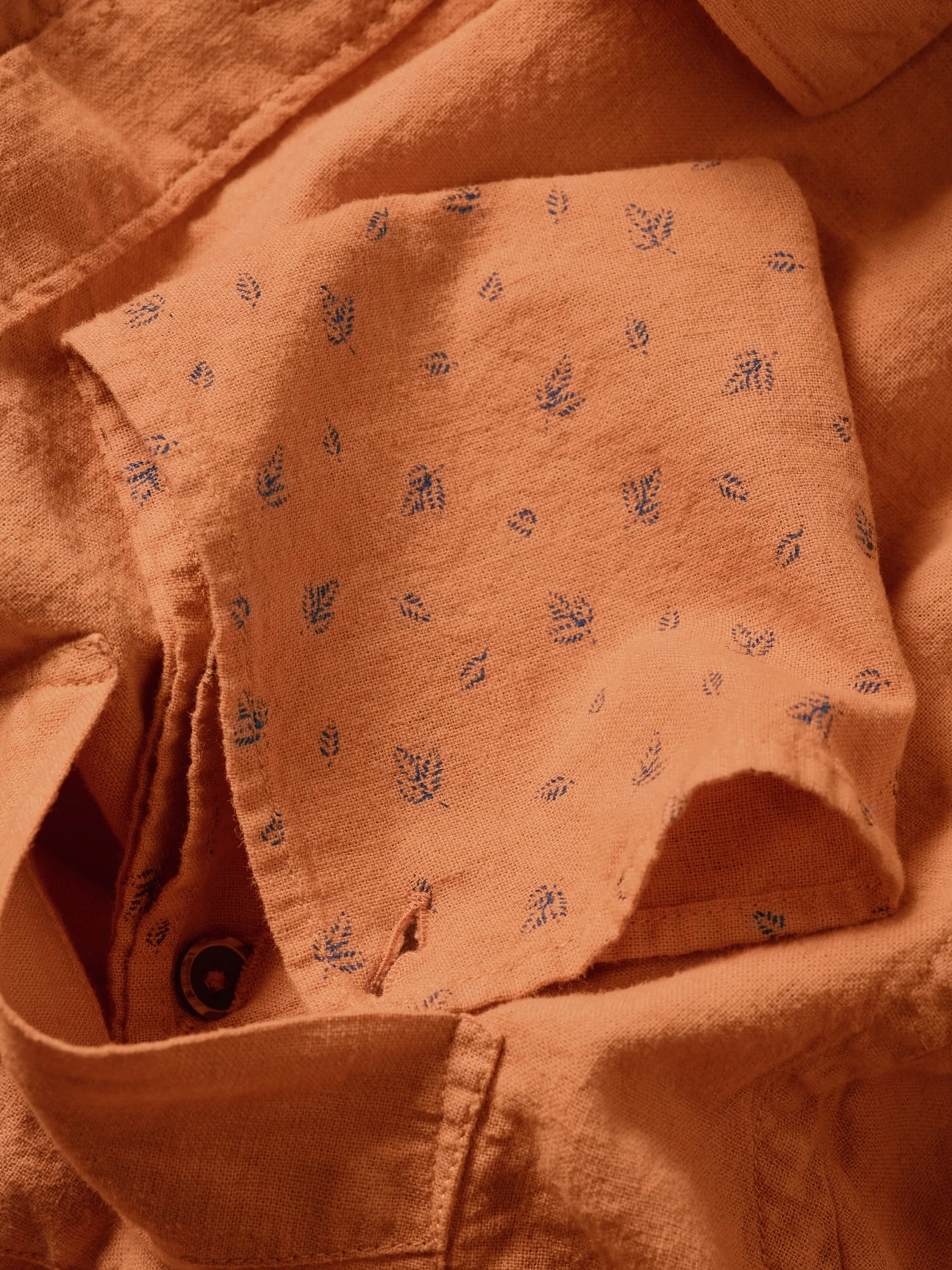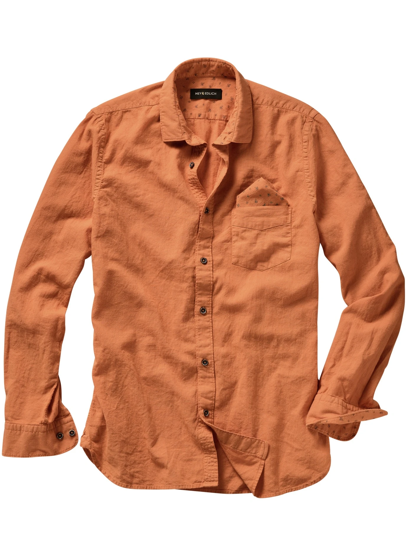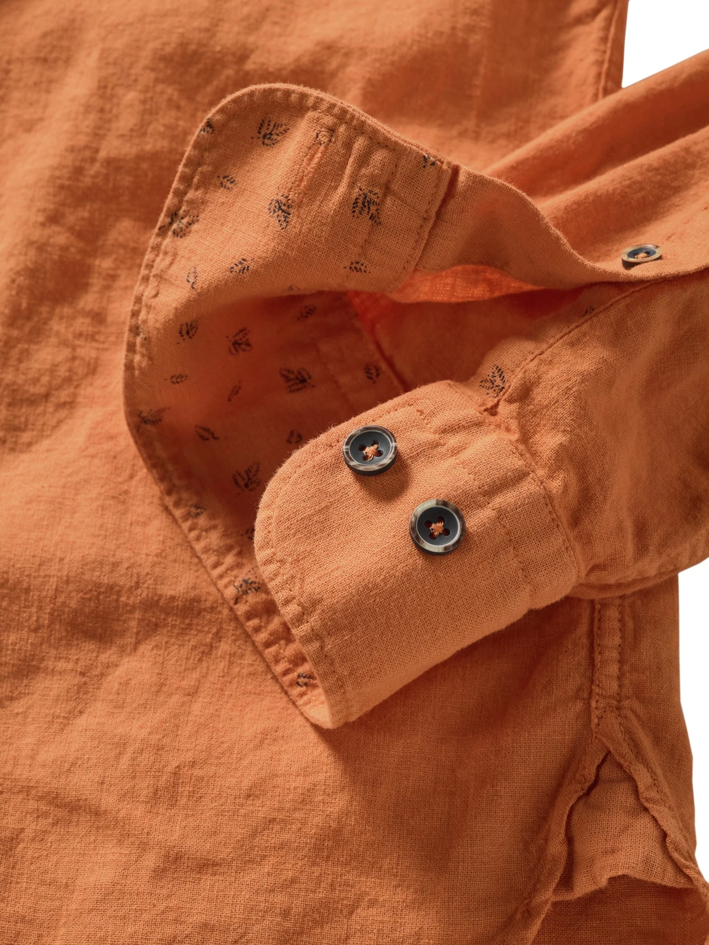 Bei Temperaturen über 30 °C ist es eine Herausforderung, gut angezogen zu sein. Ein Leinenhemd macht dann den halben Job. Der etwas festere Stoff steht immer ein wenig von der Haut ab und wirkt dadurch wie ein Blasebalg, der Luft zufächelt. Und da, wo das Hemd die Haut berührt, nimmt es mehr Feuchtigkeit auf als Baumwolle, ohne sich nass anzufühlen. Für dieses Hemd wurde Leinen mit hochwertiger Baumwolle gepaart (knittert weniger). Die Brusttasche ziert ein Einstecktuch (knöpfbar), was ein Sakko drüber obsolet macht. Sein floraler Print befindet sich auch im Kragen- und Manschetteninneren, daher ruhig krempeln.