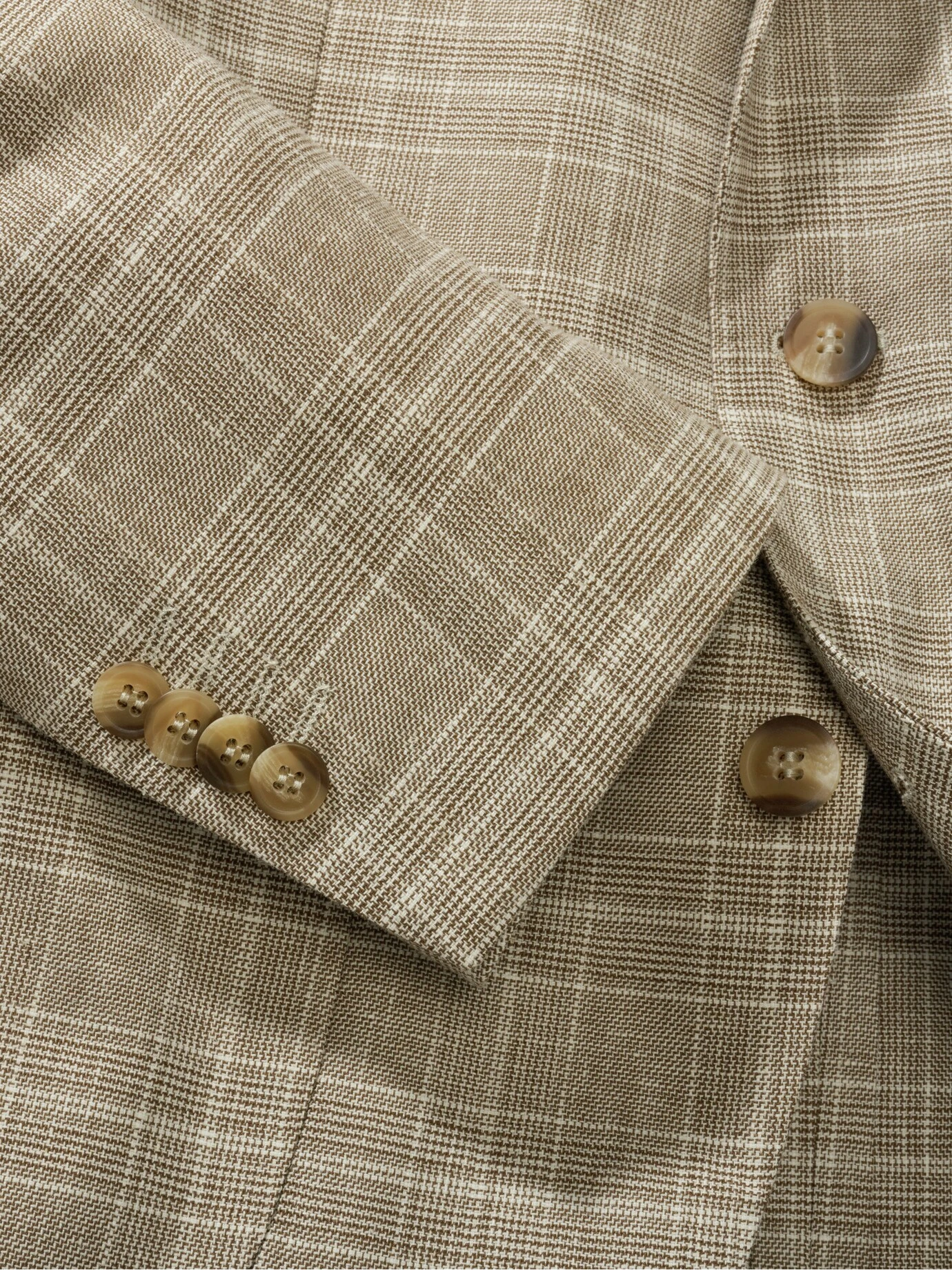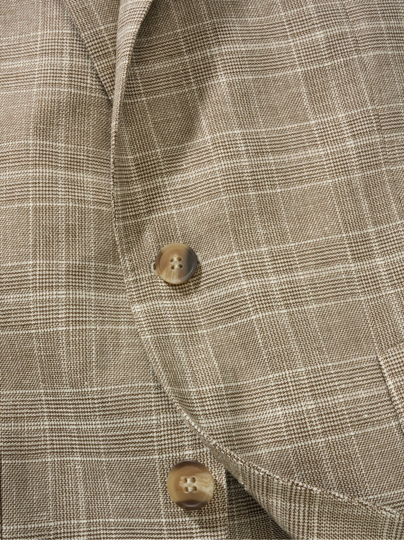 In ihm feiern Sie die Liebe. Mit ihm gewinnen Sie mehr Zeit zur Planung von freier Trauung, Boho-Hochzeit oder dem Ja-Wort am Strand – denn die Entscheidung für das passende Hochzeitssakko liefert das Haus CINQUE. Ideal als Dreiteiler mit Weste (Nr. 24-6777-5) und Hose (Nr. 24-6776-8). Dazu ein Klappmanschettenhemd, ein Einstecktuch, edle Lederschnürer (oder barfuß) und ein Lächeln über beide Ohren. Das Karo verleiht Eleganz, für das Vintage-Flair sorgen die Knöpfe in Hornoptik. Sofern der Bräutigam einverstanden ist, auch eine gute Wahl für Gäste. Der Stoff fällt leicht, lässt Sie durch den Leinenanteil auch bei Hitze entspannt bleiben und sieht noch beim Mitternachtssnack frisch aus.