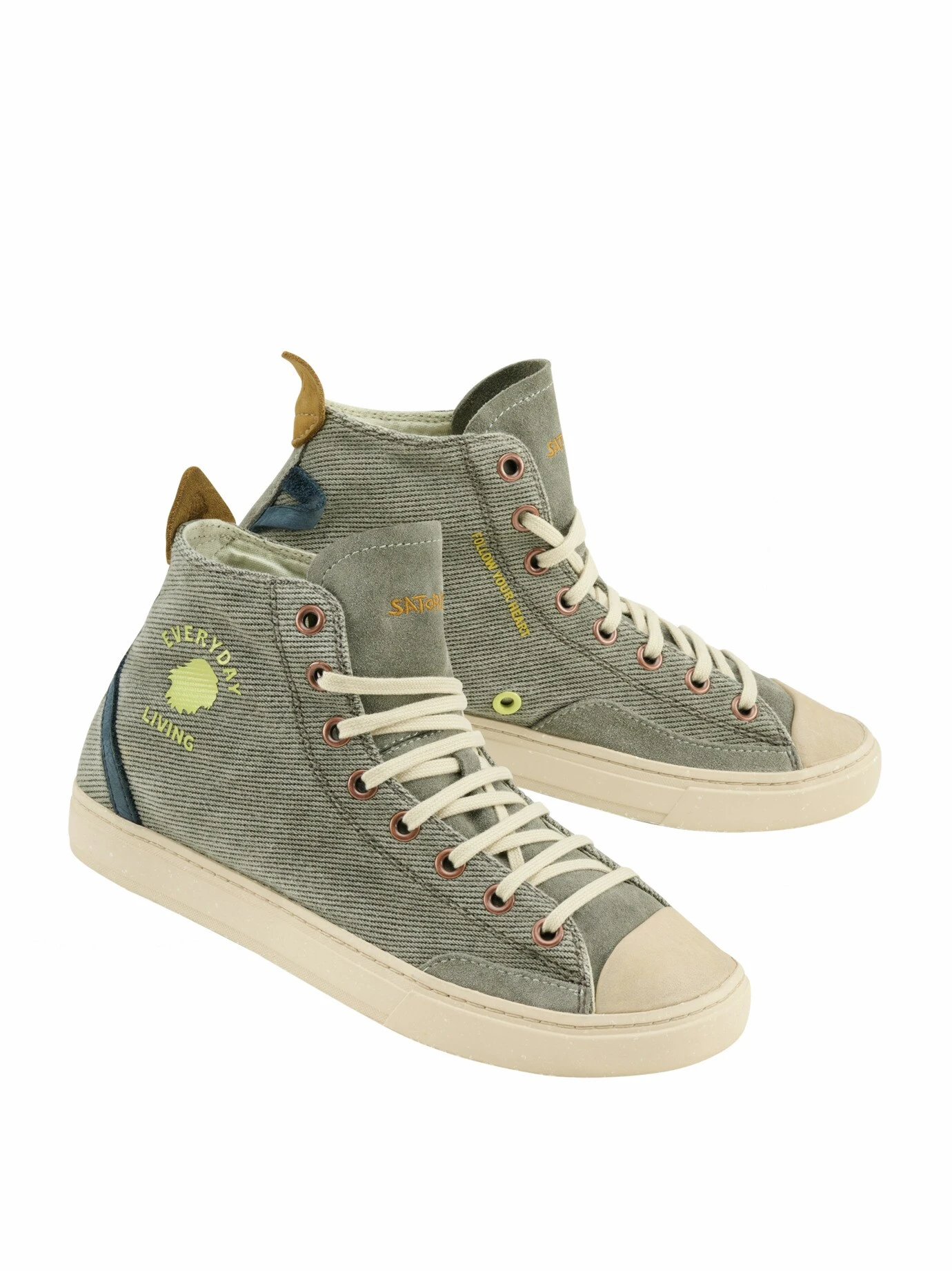 Verarbeitung: Mid-Top-Sneaker aus gewaschener Baumwolle. Haltbar montierte Gummilaufsohle aus recycelten Materialien. Lieferung mit zwei Paar unterschiedlich farbenen Schnürsenkeln.