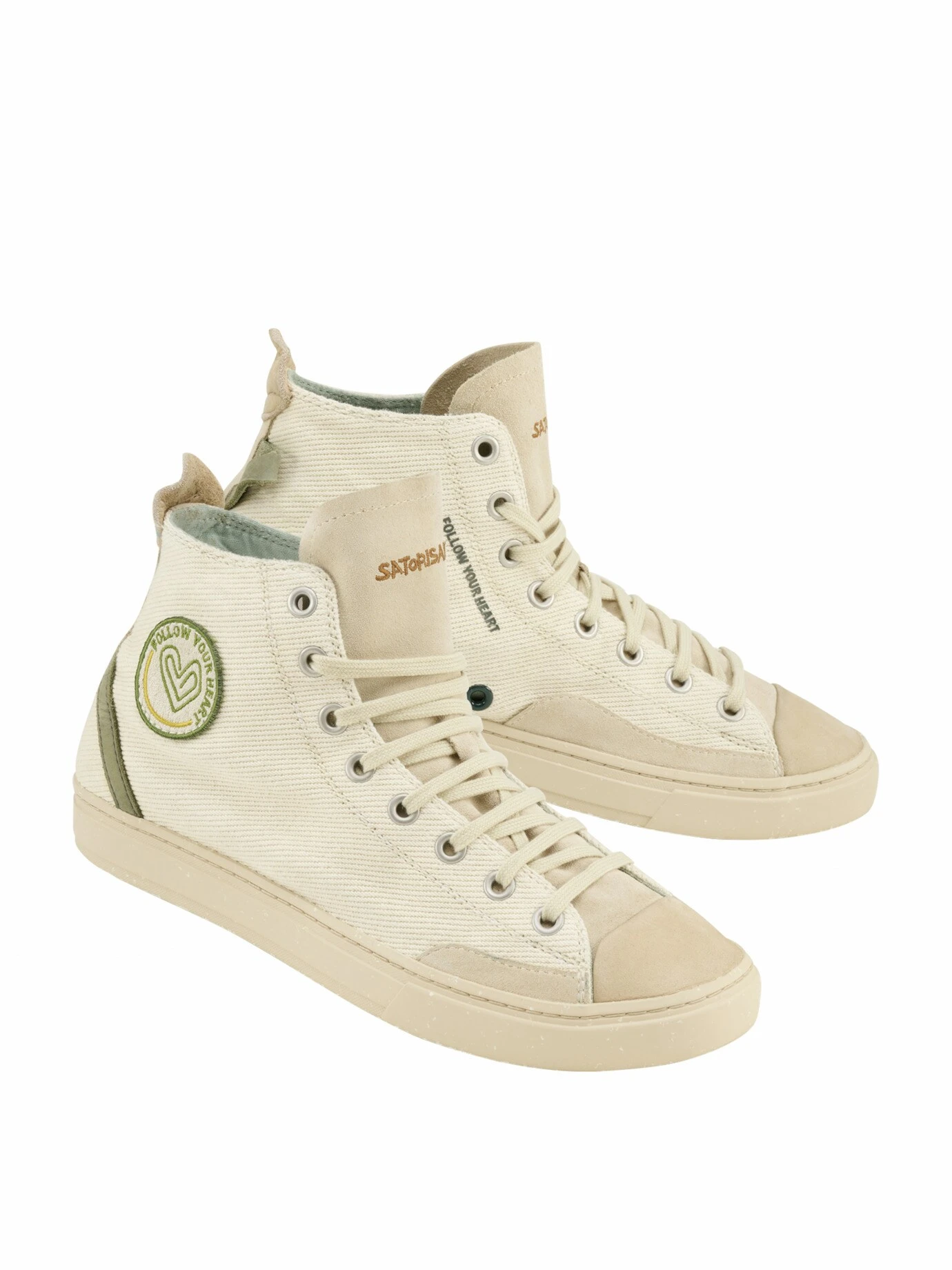 Geliebt und durchgerockt. So kennen wir die klassischen Mid-Top-Sneaker und so sollen sie auch sein. Und so passt es doch, dass im Design von Satorisan bereits ein wenig Abenteuer vorweggenommen wird. Die ausgewaschenen Farben des Baumwollstoffs sind perfekt auf die Farbe der Sohlen und Schnürsenkel abgestimmt und machen Lust auf Leben und Erleben.
