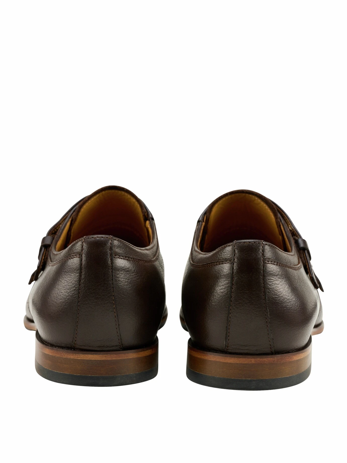 In ihm steckt ein Musketier. Damals machen sie diese Art Schuh zur Ikone, typisch mit imposanter Schnalle, heute ist die noch immer extravagant, verdeckt aber nicht den gesamten Derby. Zusätzlich ist dieser Doppelmonk mit Gummizügen unterlegt. Damit trägt sich der Schuh so bequem, dass Sie in ihn theoretisch wie in einen Loafer schlüpfen können, perfekt gerade für Männer mit hohem Spann. Ruhig auch zu kernigen Outfits kombinieren, das genarbte (chromfrei gegerbte) Kalbleder wirkt aber auch zu dunklen Hosen.