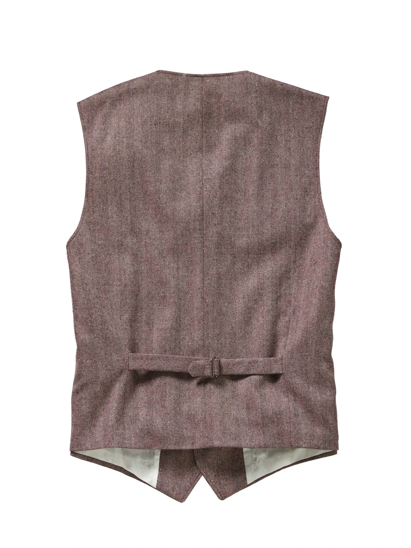Ursprünglich gehörte die Weste verbindlich zum Anzug. Heute geht es auch ohne richtig gut, weil Weste plus weißes Hemd oder Shirt modisch total angesagt ist. Diese ist aus Wolle und feiner Seide, gewebt in Florenz, stilecht als kerniger Tweed mit den kleinen Noppen.