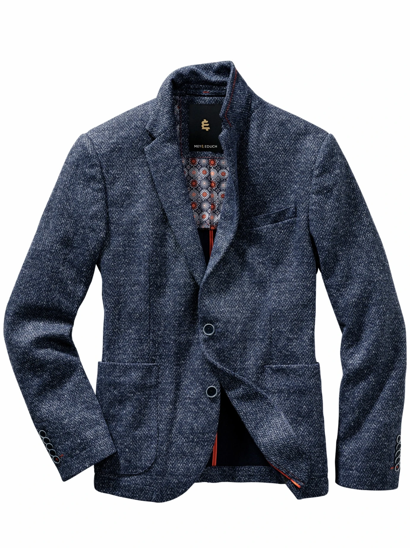 Ersetzt mindestens zwei Sakkos. A) den klassischen blauen Blazer, der heutzutage ruhig etwas unkonventioneller aussehen darf. B) das lässige Freizeitsakko. Lebendige Struktur, dank der gesprenkelten Maschen in Blau, Hellblau, Weiß. Nominiert sich selbst für viele Kombinationen – welche Farbe Sie dazu tragen, entscheiden Sie spontan vorm Kleiderschrank. Es passt jede. Der Stoff: eine sommerliche Kombination aus Leinen, Baumwolle und Hightech, die kaum bis gar nicht knittert und sich leicht, elastisch-bequem auf den Schultern trägt. Vielseitig kombinierbar nominiert es sich daher jeden Tag aufs Neue.