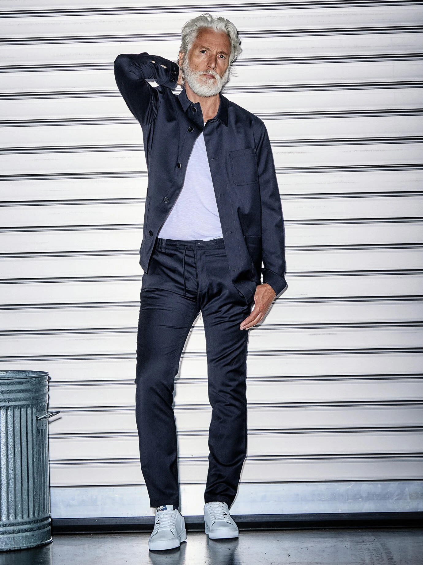 Arbeitskleidung für Brainworker. Wer Überstunden macht, trägt gerne Komfort. Hauptsache bequem. Nur fein sollte es aussehen. Das brachte Textilentwickler auf die Idee, einen neuen Mix zu erfinden: beste Wolle mit Polyester gegen die Knitter und Elasthan für die Bewegungsfreiheit. Das Ergebnis transformiert einen Wohlfühlkomfort auf ein edel schimmerndes Sakko im Overshirt-Stil. Das können Sie separat oder mit gleichnamiger Hose als Anzug tragen. Wenns gefällt, kombinieren Sie unterschiedliche Farben. Wertige Shirts oder schlanke Pullover passen perfekt.