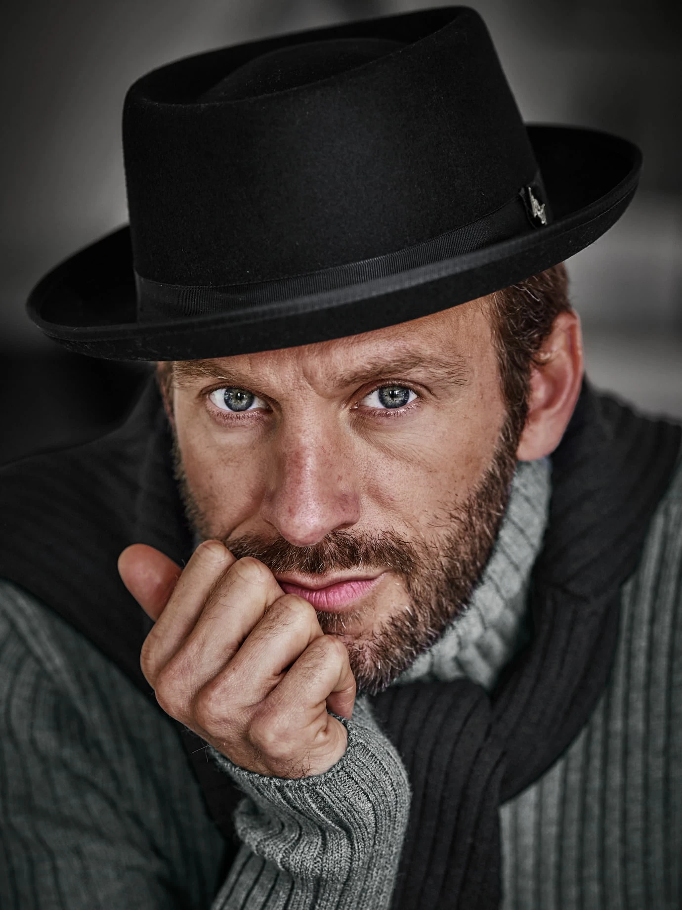 Steht seit 1920 ausnahmslos jeder Gesichtsform. Exklusiv für Mey & Edlich hat die Kölner Hutmanufaktur Diefenthal1905 diesen Pork Pie gefertigt. Typisch mit flacher Hutkrone, die ihn in Form bleiben lässt. Sein Filz stammt aus einer renommierten Wollstumpen-Fabrikation aus Madeira. Dicht genug, um vor Wind und Regen zu schützen, und per Hand dann genäht und in Form gezogen.