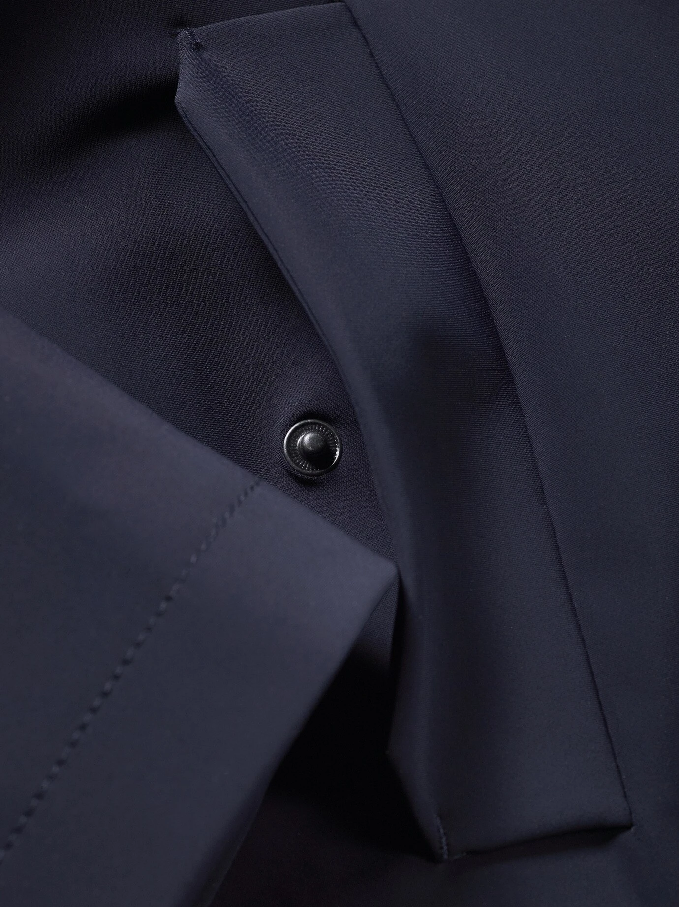 Verarbeitung: Zwei Leistentaschen außen. Zwei Paspeltaschen innen. Hinter der verdeckten Knopfleiste verbirgt sich ein Metallzipper. Regular Fit.