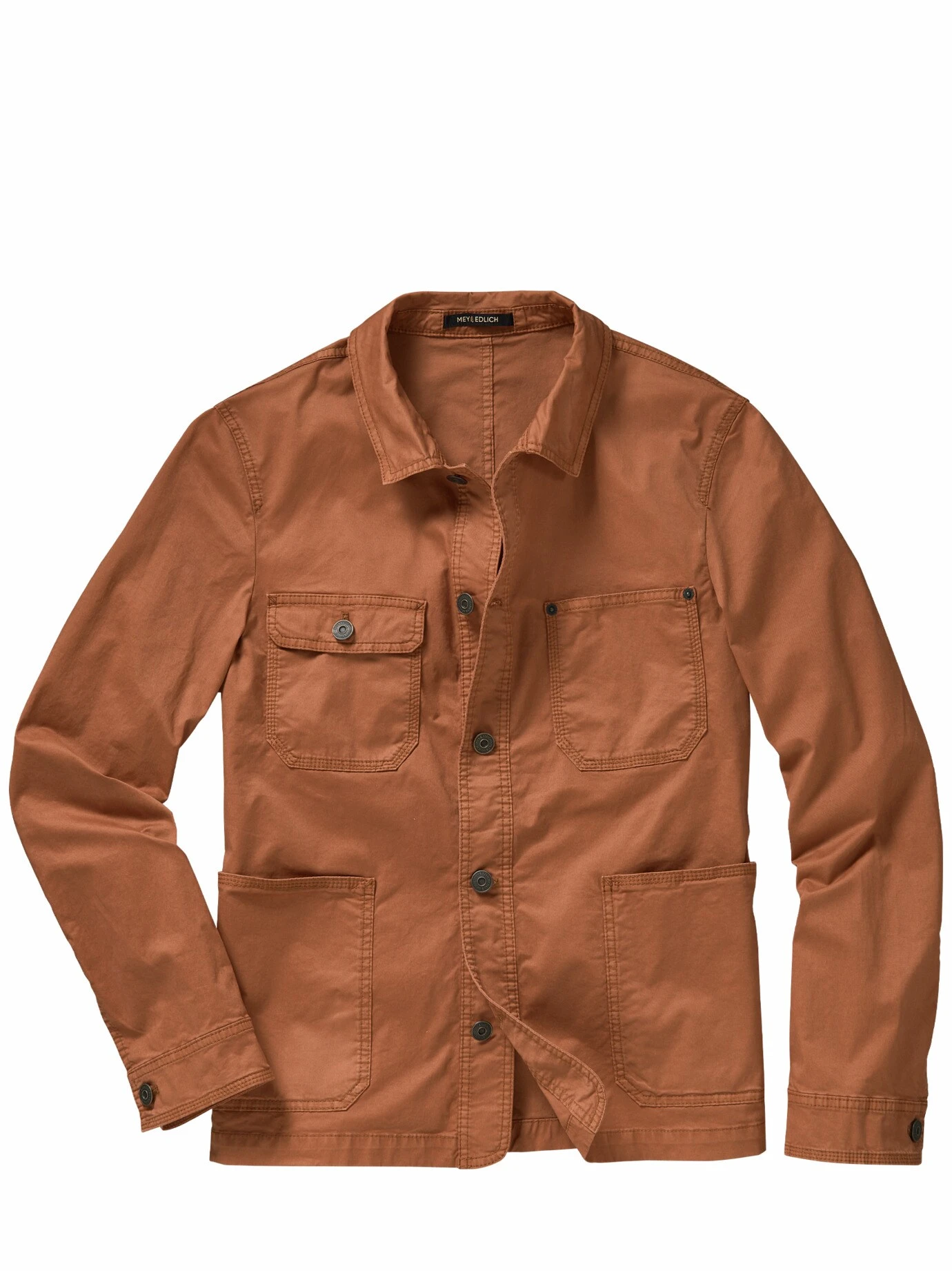 Pronto per tinto. Zu Deutsch: bereit zum Färben. Diese leichte Sommerjoppe ist ein Stückfärber und wird entsprechend im Rohzustand konfektioniert und dann erst im Ganzen gefärbt und gewaschen. Vom Schnittansatz her eine typische Arbeitsjacke, mit üppigen, aufgesetzten Taschen. Luftiger und bewusst ungefüttert, so trägt sie sich auch gut an Sommerabenden. Den Gesamtlook verfeinern die authentischen Jeansknöpfe, als Verschluss und an den Ärmeln. Als sommerlicher Überzieher zur kurzen Hose genauso gut wie zur Jeans. Perfekt zum leichten Pullover oder mit Shirt. Dazu passen sportliche Schuhe.