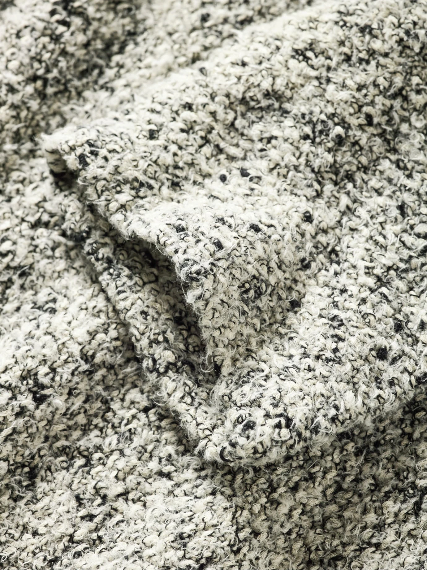 Erhabenes Strickgut aus München. Keine Bündchen, Nähte so flach, dass sie nicht zu spüren sind. hannes roether ist einer der wenigen, der par excellence die Schlauchstricktechnik beherrscht – am Ende werden nur Ärmel und Schultern vernäht. Mehrwert schafft das deutsche Strickgut selbst, jede einzelne Masche des fetten 5-Gauge-Garns wird dafür separat umgelegt. Die festen Verschlingungen des noppigen Baumwollgarns verschaffen Volumen, Stabilität und machen den Pullover unzimperlich. Nur konsequent bei einem so gelungenen Design, das an gewaltige Nebelschwaden erinnert.