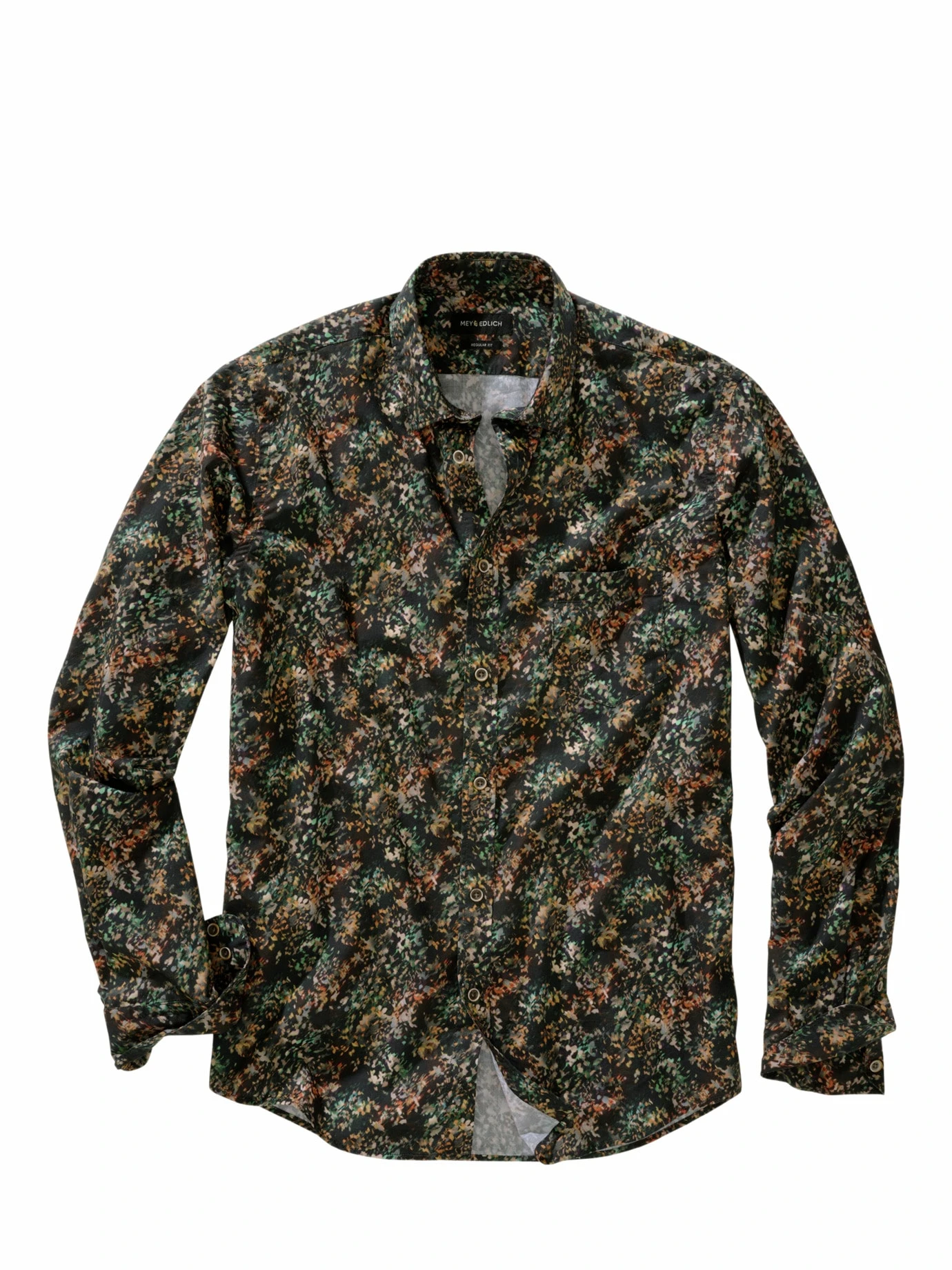 Richtungsweisend unter Kunsthändlern. Angelehnt an die Idee des Pointilismus ist dieses Hemd entstanden. Stark in der Schattierung, denn de facto werden Azur, Safran, Pinie, Lavendel & Co. zur Kontrastverstärkung auf tiefbraunen Popeline gedruckt. Den feinen Baumwollstoff kennen Sie von teuren Businesshemden und genauso trägt er sich auch. Liefert den Gesprächseinstieg unter Sakko und zu dunkler Hose. Stilgerechte Einrahmung aber auch zur Five Pocket in einer der Druckfarben.
