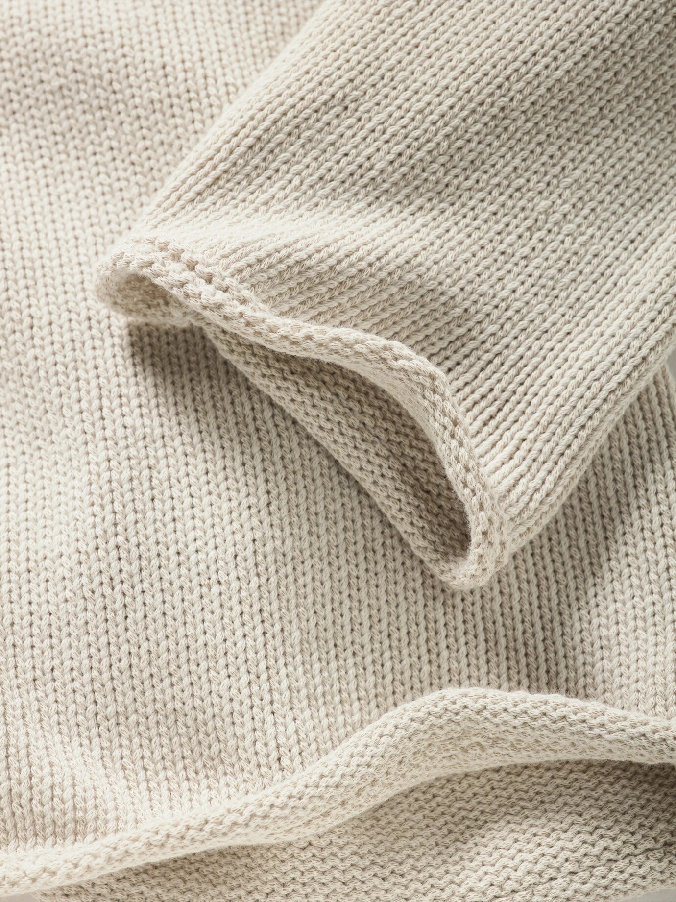 Macht Positiv-Schlagzeilen. Er drängt sich nicht ins Bild, die Rollkanten weisen dezent darauf hin, dass in ihm ein modisch informierter Kopf steckt. Mit 5 Gauge ist der Pullover etwas gröber gestrickt. Der hohe Baumwollanteil im italienischen Garn gleicht den Temperatursprung vom Außentermin zum Innenraum aus, die Hightech-Fasern bringen Ausdauer und Stabilität. Ins Café mit Jeans oder Chino, zur Lesung unter dem Anzug.
