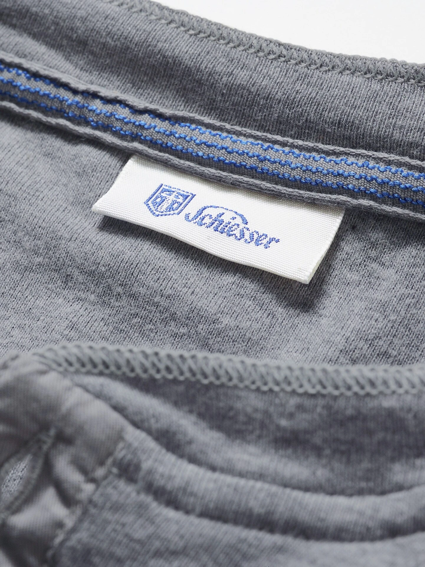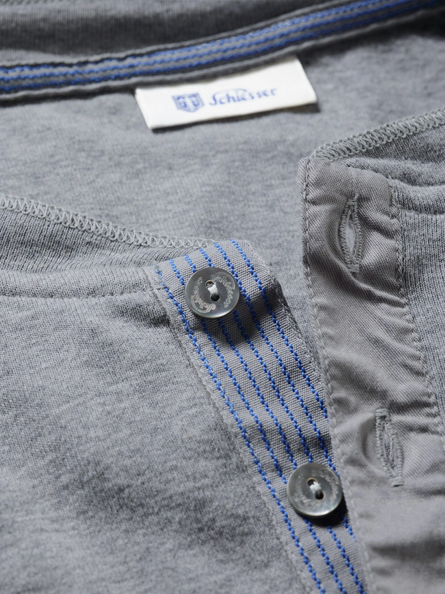 Mit der Idee von 1923 erlebt die hochwertige SCHIESSER Feinrippunterwäsche ihr Mode-Revival. Der deutsche Wäschespezialist verwendet dafür fein gekämmte Baumwolle. Sie ist besonders dicht und glatt, deutlich haltbarer als herkömmliche und verleiht dem Wäschestück einen ganz natürlichen Glanz. Die Shirts werden übrigens gern auch als Oberteil getragen – durch ihre patentierten, breiteren Bündchen und den Akzent an der Knopfleiste, auf der italienische Perlmuttknöpfe aufgelegt sind, wirken sie angezogen und weniger wäschig.