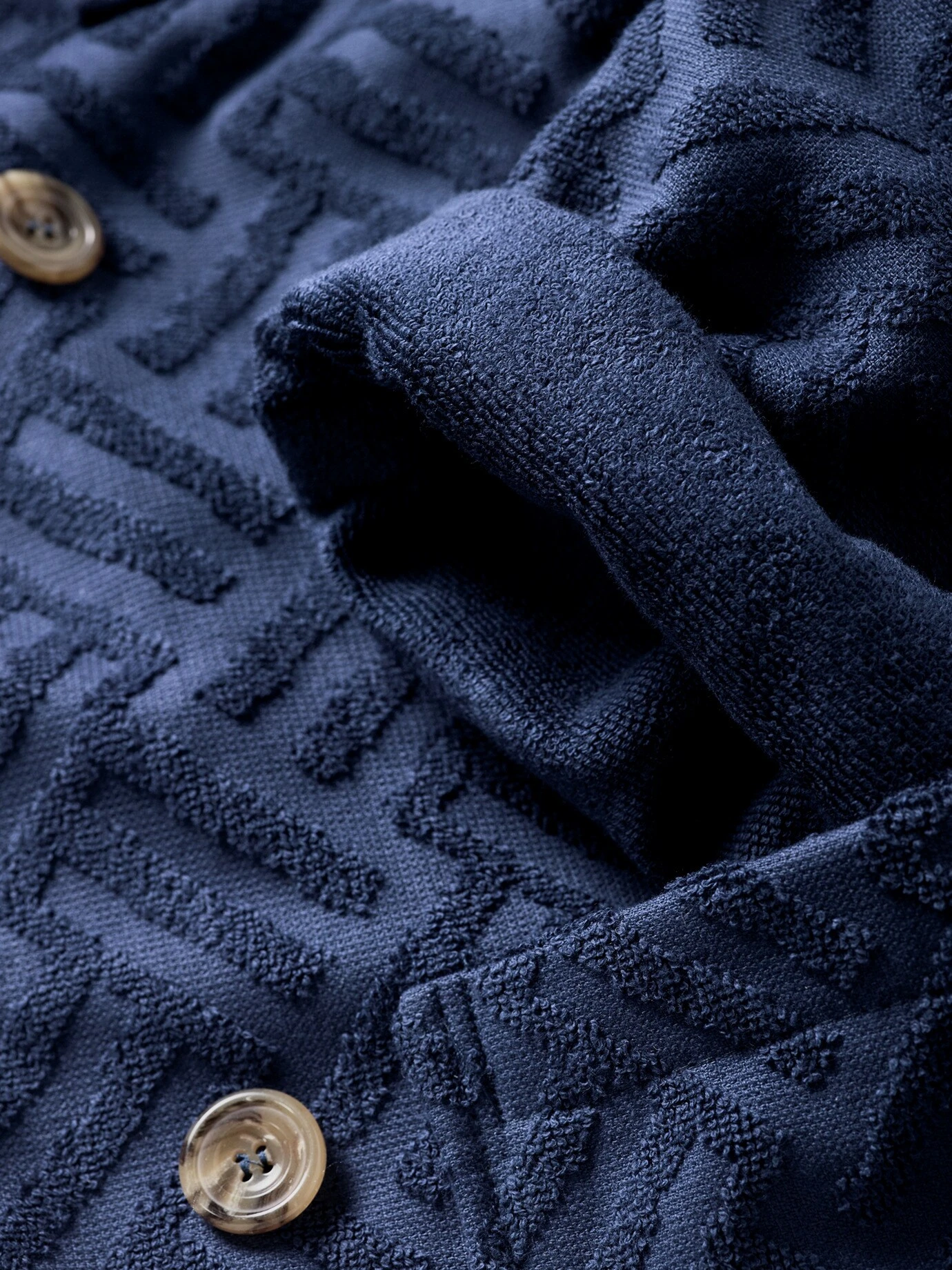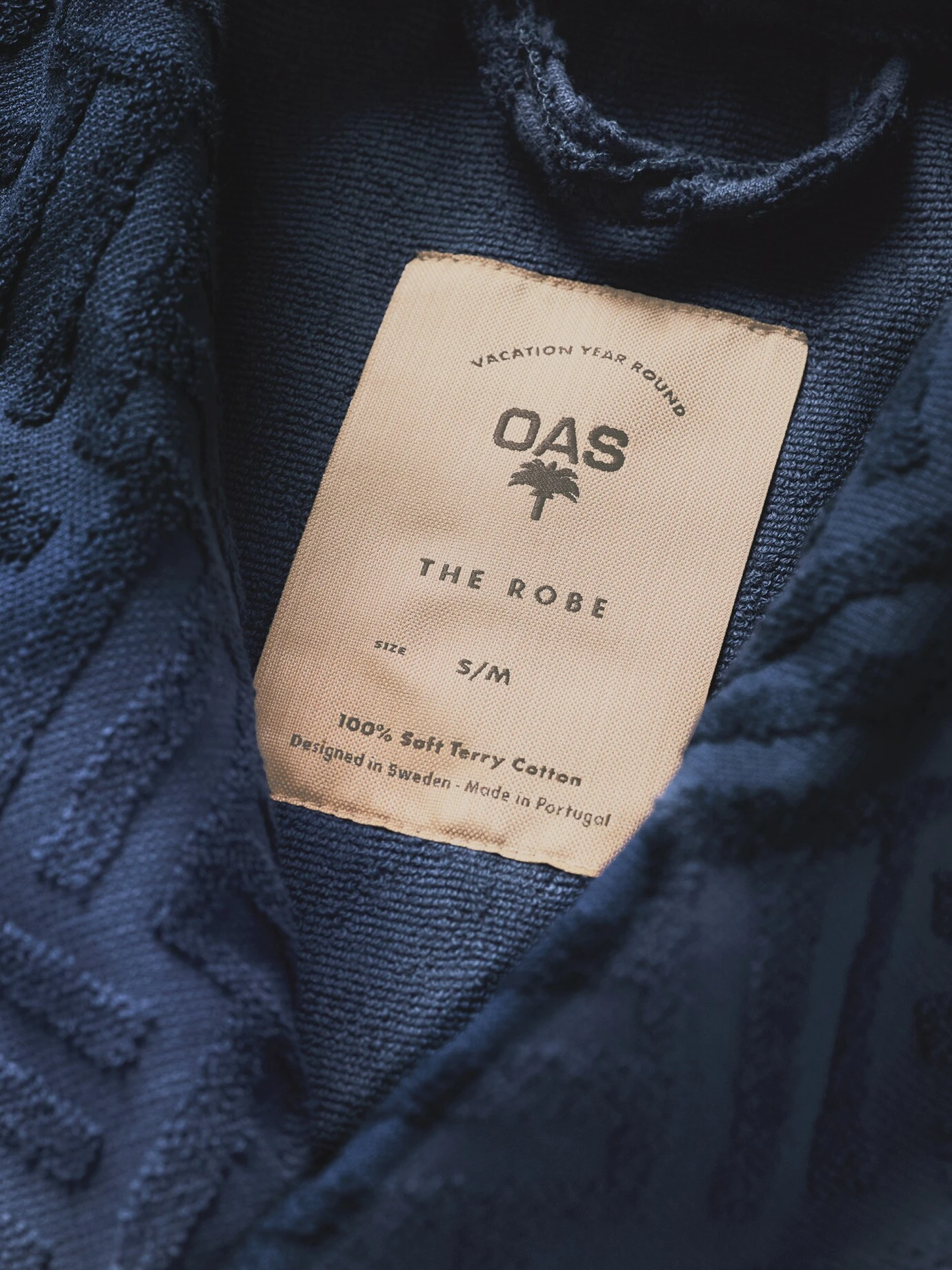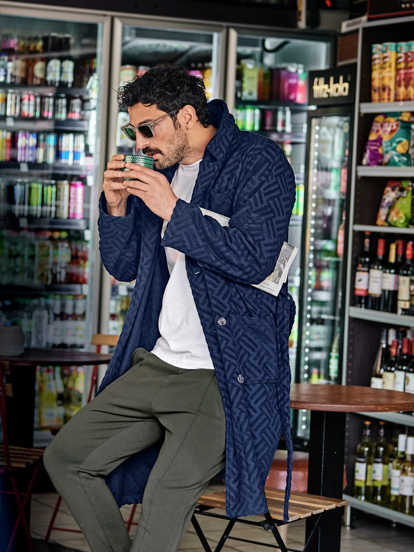 Ihr Erfolg liegt in ihrer Verschwiegenheit. Seit Jahren fertigt OAS Bademäntel für die renommiertesten Hotels dieser Welt – Namen samt Zimmernummern nennen sie keine und so bleibt es ihr Geheimnis, wer außer Ihnen den Royalsten aller Bademäntel (achten Sie auf das Royalblau samt doppelter Knopfleiste) nach Dusche oder Sauna trägt. Und wenn Sie Frottee zwar schätzen, aber aus stilistischen Gründen etwas skeptisch gegenüberstehen, dann sind Sie mit diesem perfekt aus dem Schneider. Sorgfältig eingewebtes Jacquard-Muster, dessen Außenseite dem Bademantel neue Eleganz verleiht. Genauso wie der Reverskragen, der den Hals gut vor Zugluft schützt.
