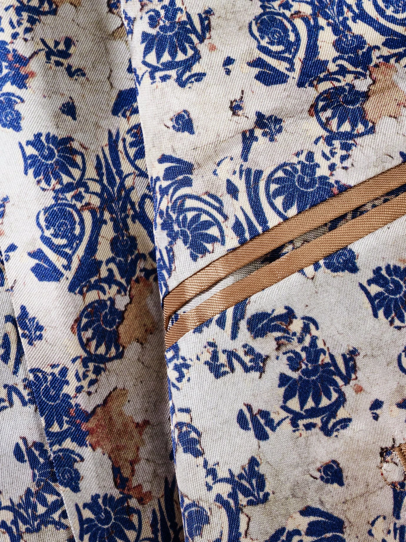 Material: Obermaterial: 67 % Baumwolle, 31 % Viskose, 2 % Elasthan. Kragen: 100 % Polyester. Hauptfutter: 100 % Viskose. Ärmelfutter: 66 % Acetat, 34 % Polyester. Reinigung.