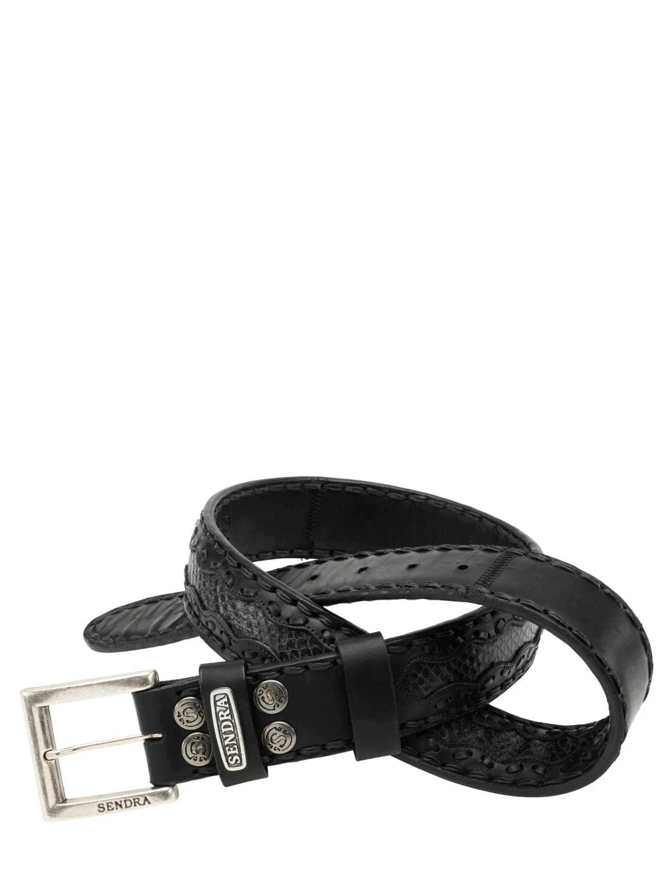 Für Schlangenbezwinger. Mit diesem Gürtel beweist Sendra® mal wieder seine Kunstfertigkeit beim Thema Leder. Ein echtes Unikat. Gefertigt aus doppelt vernähtem spanischen Rindleder, anschließend wird eine weitere Schicht in Schlangenoptik aufgetragen. Die Zamak-Schnalle ist durch die verarbeiteten Druckknöpfe austauschbar. Wenn, dann immer in der Jeans.