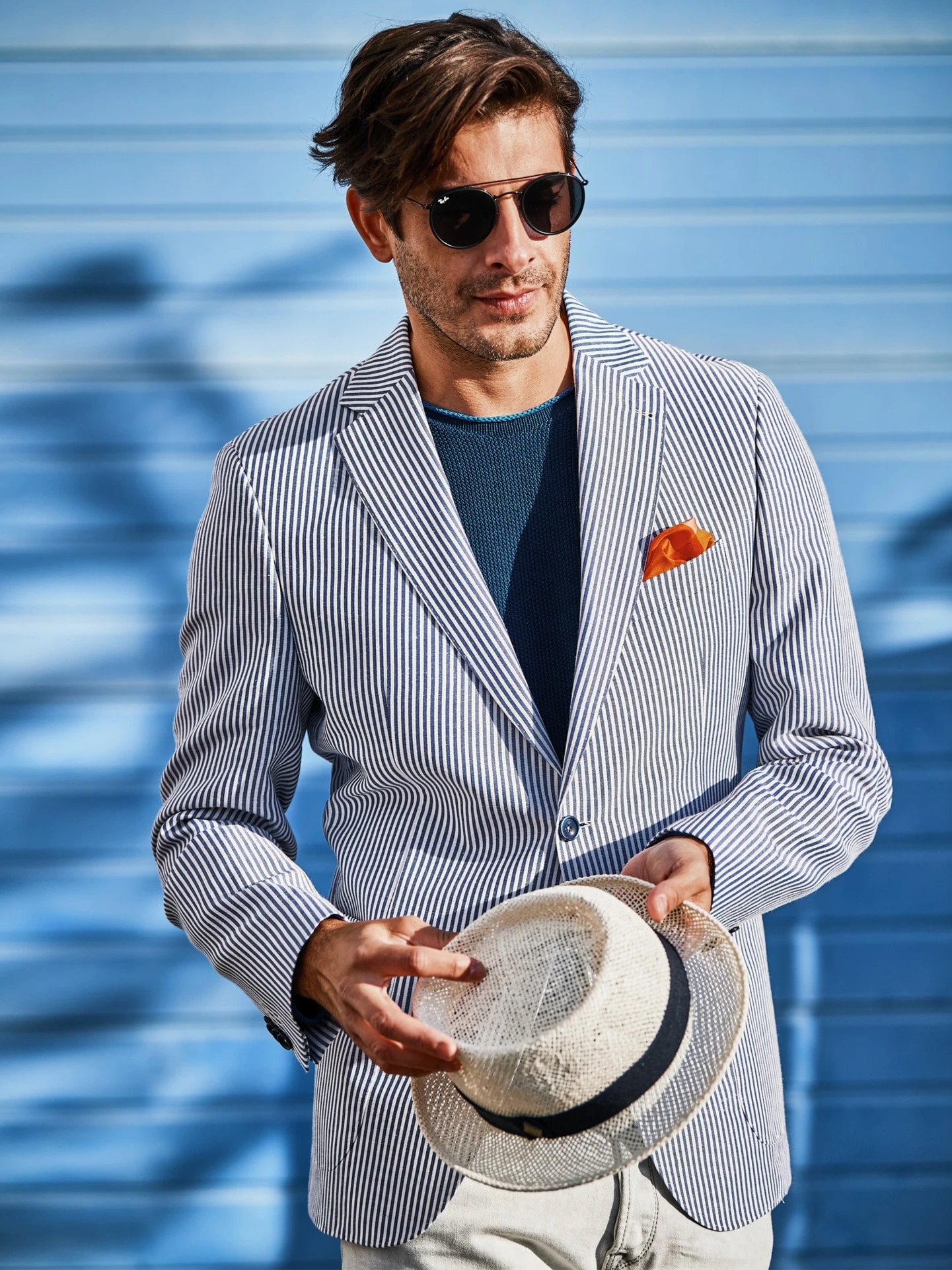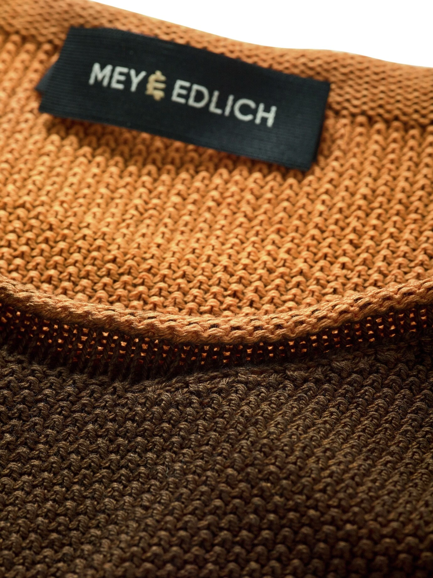 „Außen hart und innen ganz weich.“ Seine dunkler gefärbte Oberfläche erinnert an Schmirgelpapier; innen merken Sie davon gar nichts. Der Schmirgel-Pullover wird in Italien aus weicher Baumwolle gestrickt und ist daher auch auf nackter Haut tragbar. Der fertige Pullover wird stückgefärbt und schließlich mit einem dunkleren Spray benetzt. Die gestrickten Schlingen härten aus und es entsteht ein intensiver Farbkontrast zwischen innen und außen.