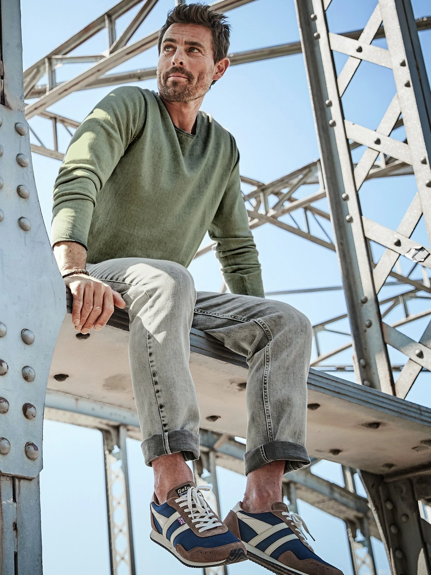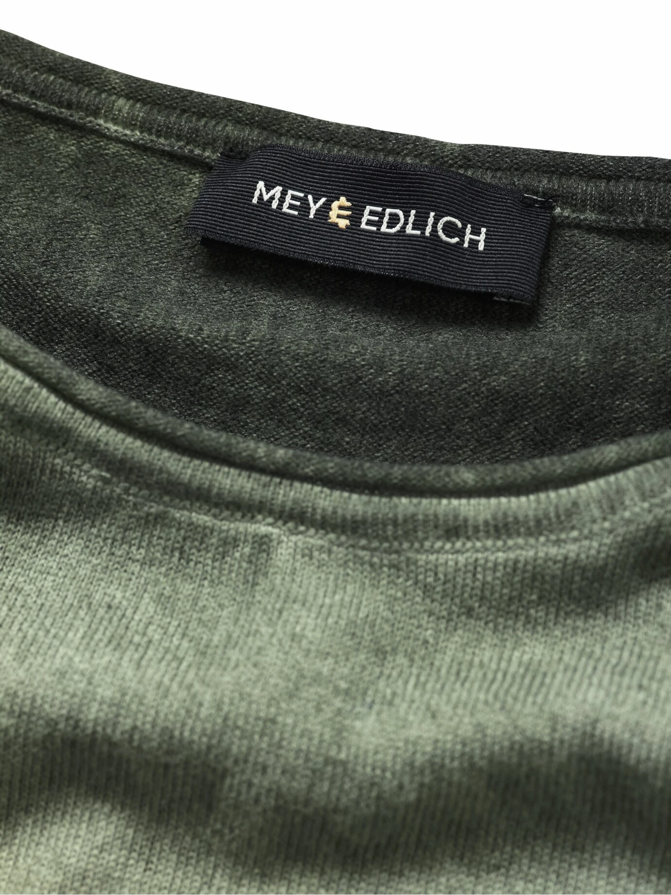 Schattiges Design. Mehr Tiefe, mehr Geschichte, mehr Charakter, den perfekten Used-Look trägt dieses Shirt vom ersten Tag an. Die wolkige Färbung verleiht dem Strickshirt ein astreines Image. Einmal angezogen liegt es so leicht auf der Haut, Sie werden es kaum spüren. Die weichfließende Viskose fühlt sich eh am besten direkt auf dem Körper an, die nötige Standfestigkeit verleiht die Baumwolle. Passend zum Image sind die offenen Rollkanten. Den kernigen Look rundet Raw Denim ab.